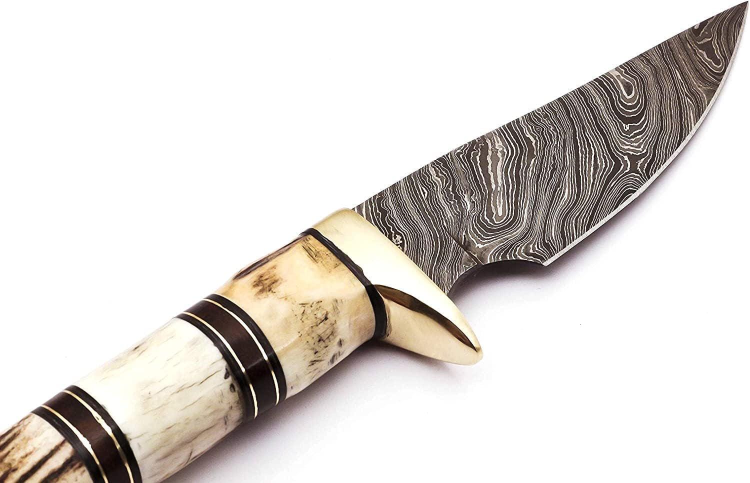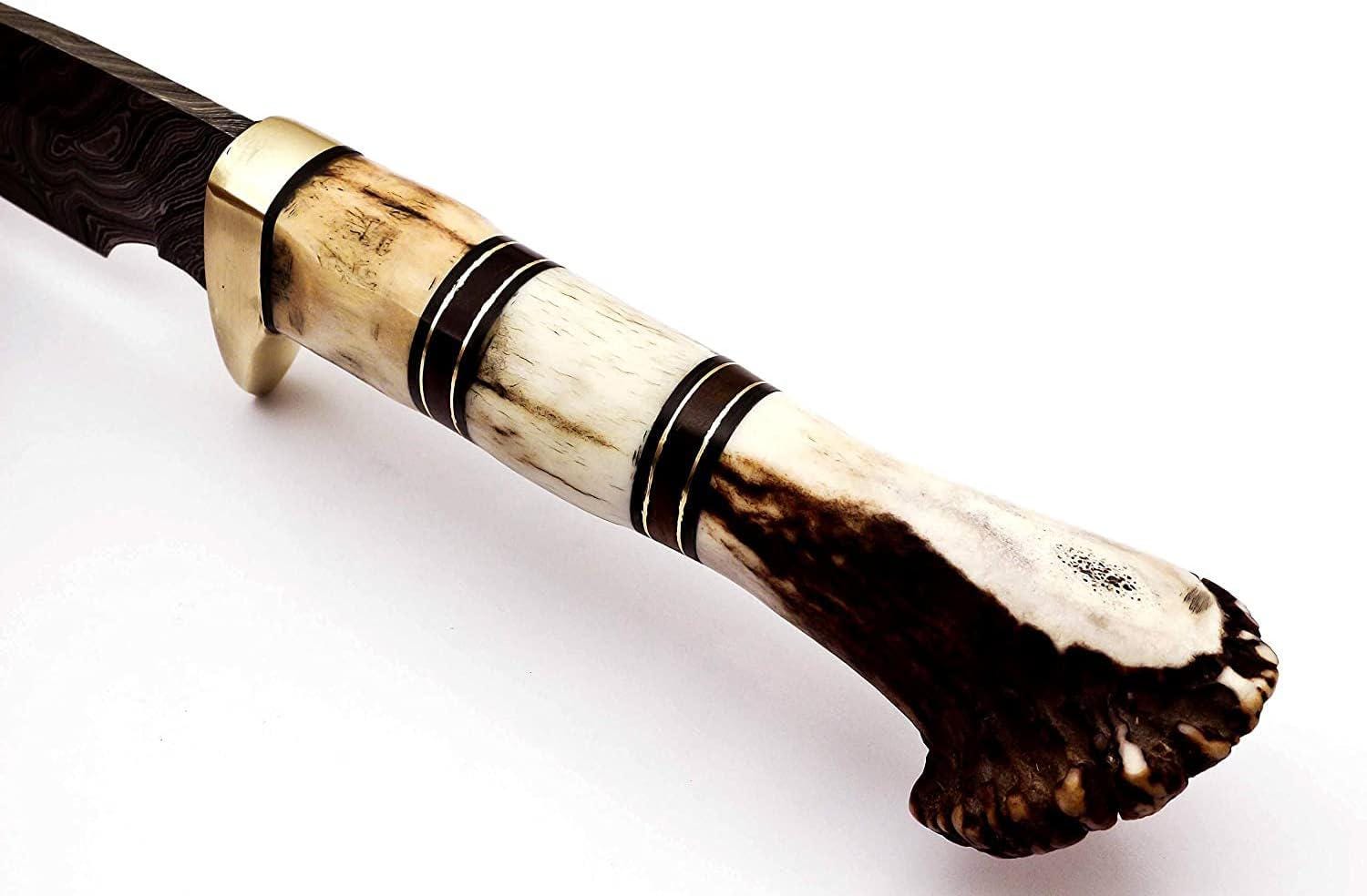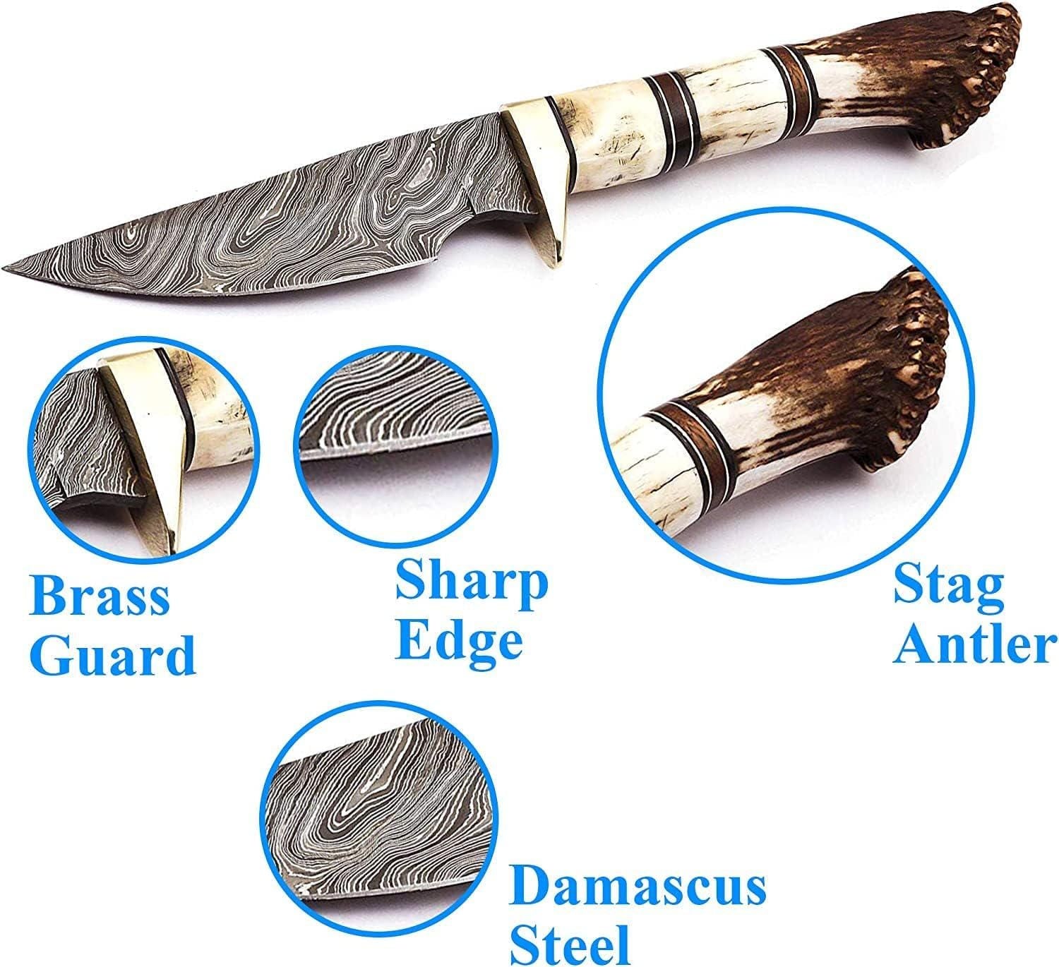 Personalized Hunting Knife, Engraved Damascus Hunting Knife, Deer Antler Stag Horn Handle, Custom Engraving Gift Father's Day Gift For Dad