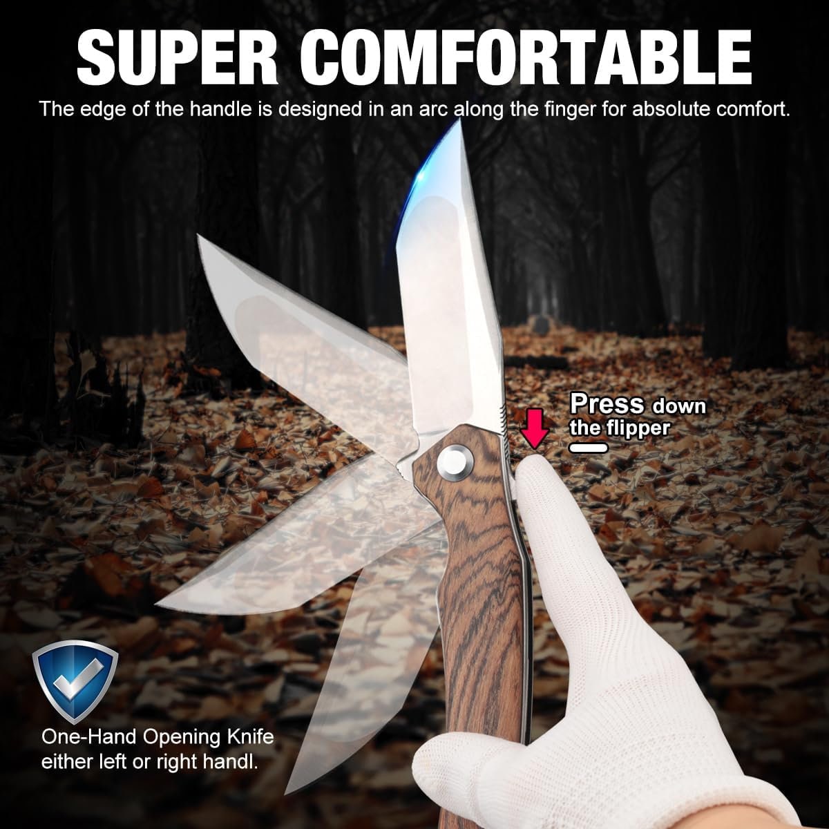 • Smooth Opening Mechanism: Equipped with a reliable and smooth folding mechanism, this knife can be opened with one hand, making it both practical and safe to use.