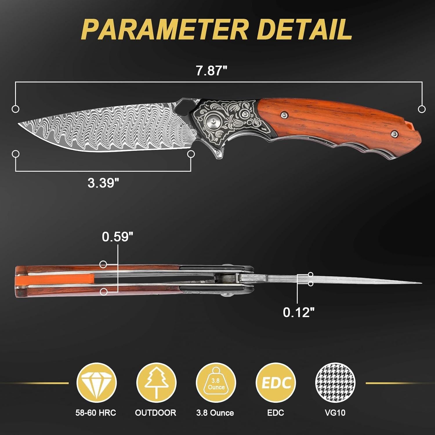 • Compact and Versatile: This pocket knife is designed with everyday carry in mind. Its compact size allows it to slip easily into your pocket, making it the perfect companion for camping, hiking, fishing, or simply handling everyday tasks.