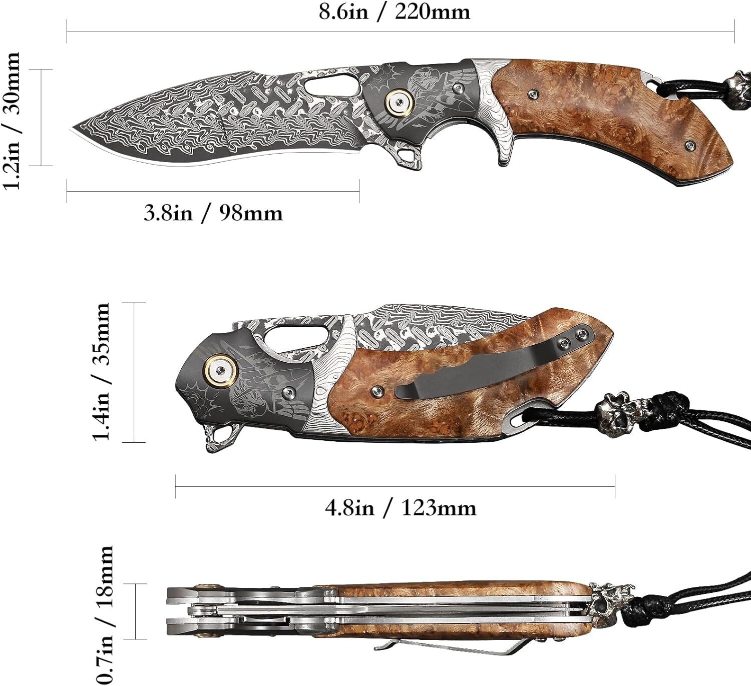 • Compact and Versatile: This pocket knife is designed with everyday carry in mind. Its compact size allows it to slip easily into your pocket, making it the perfect companion for camping, hiking, fishing, or simply handling everyday tasks.