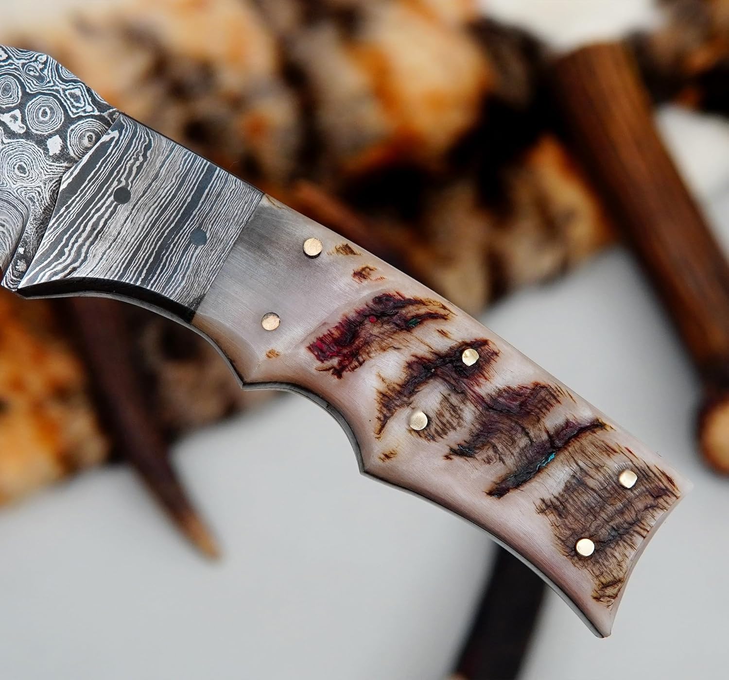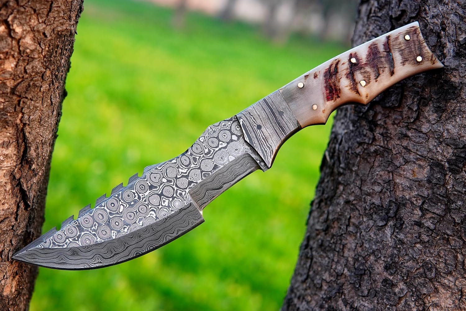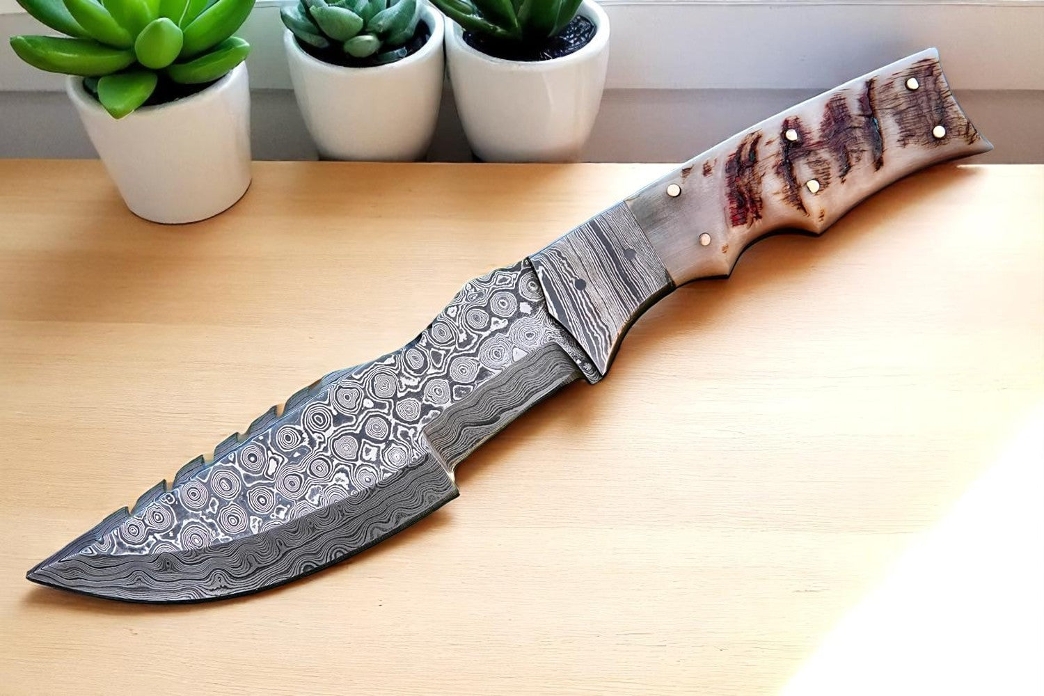 Ram Horn Handle, Engraved Damascus Hunting Knife, Personalized Hunting Knife, Custom Engraving Gift Father's Day Gift For Dad