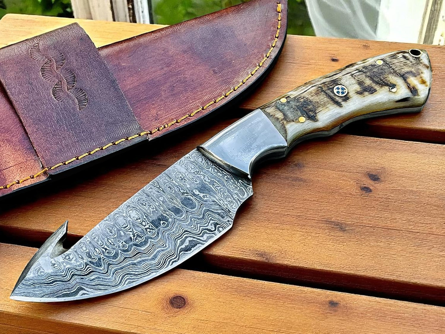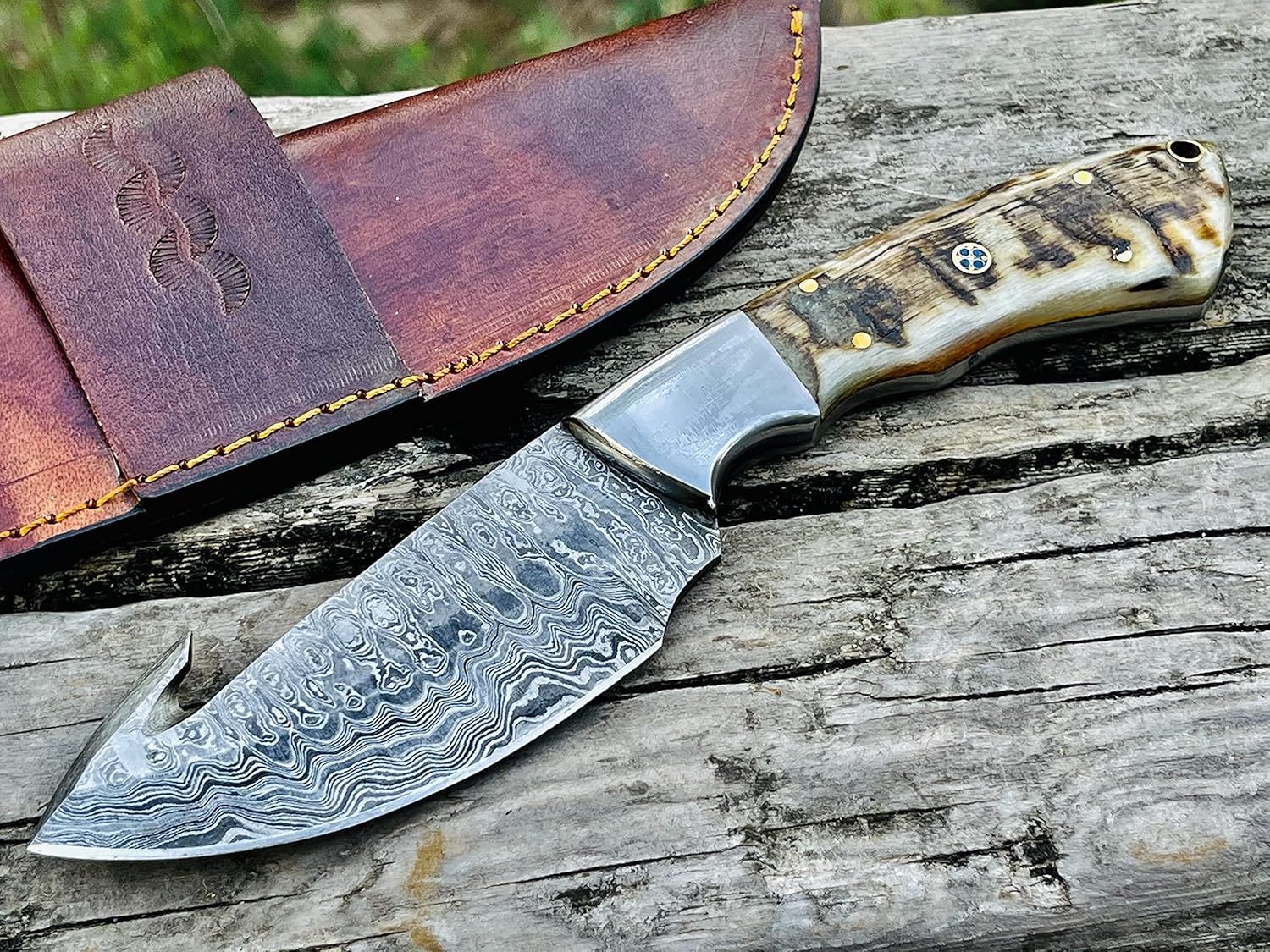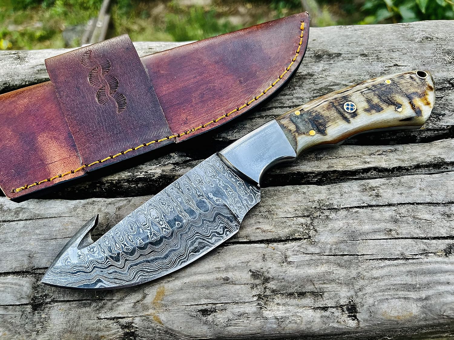 Ram Horn Handle 9.1" Damascus Hunting Knife