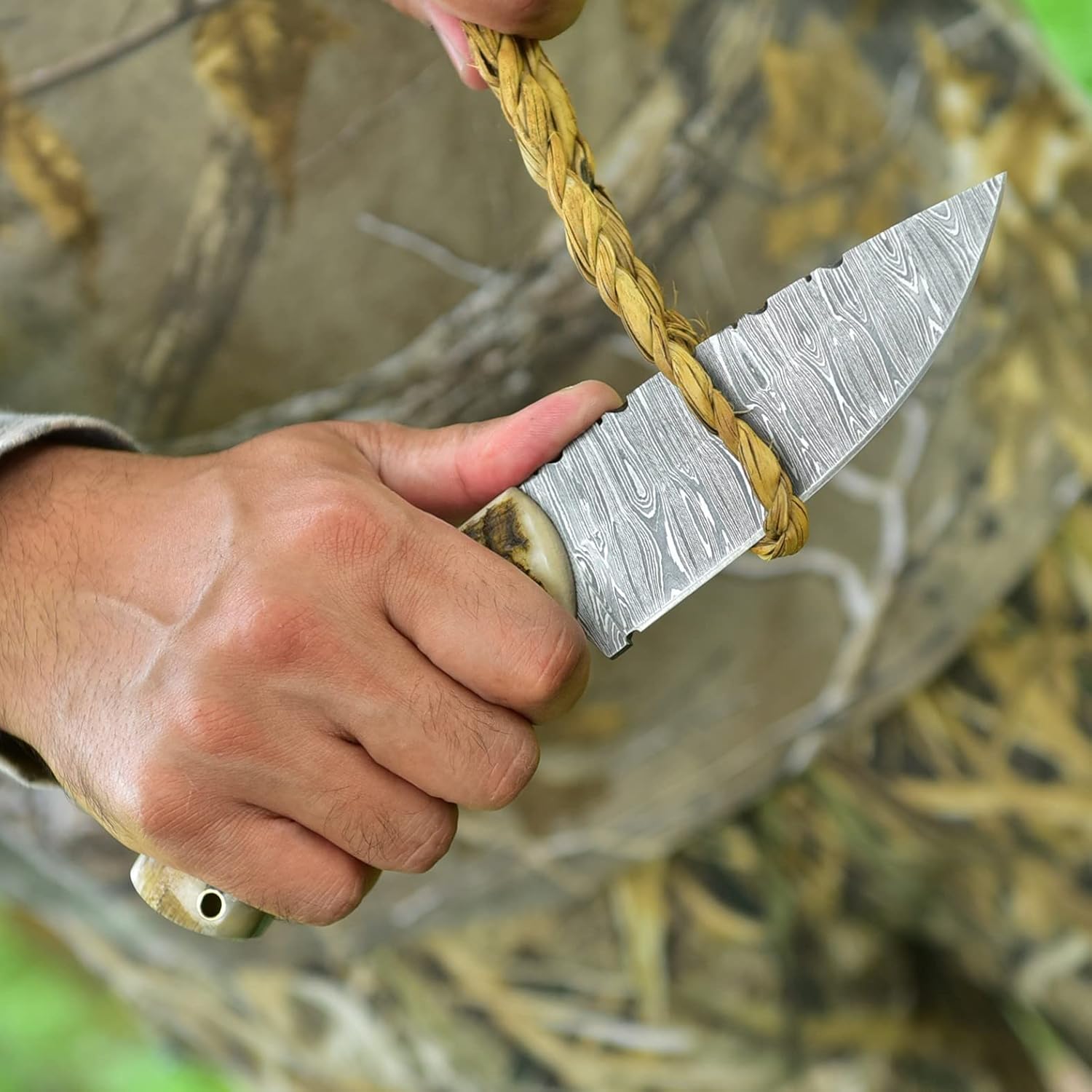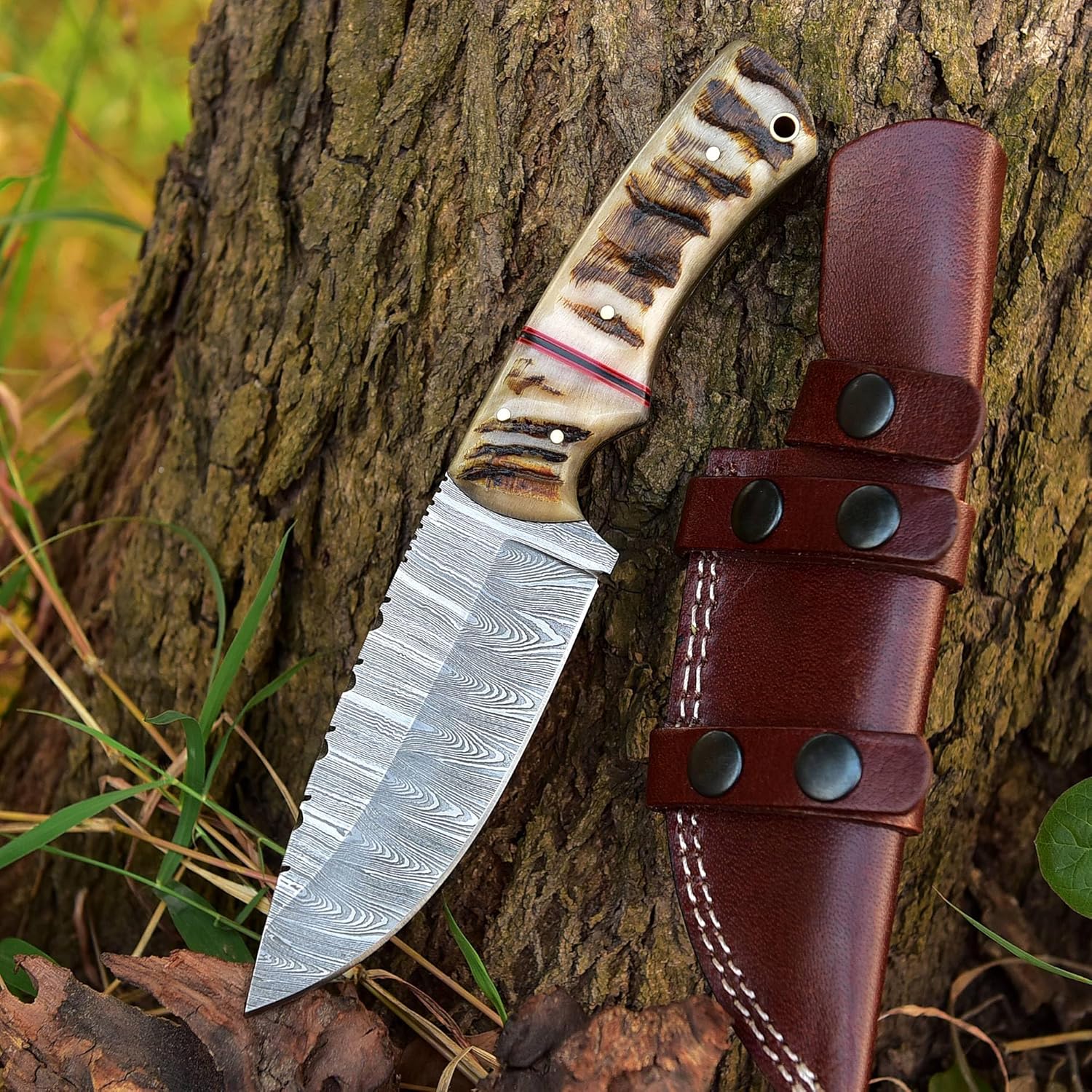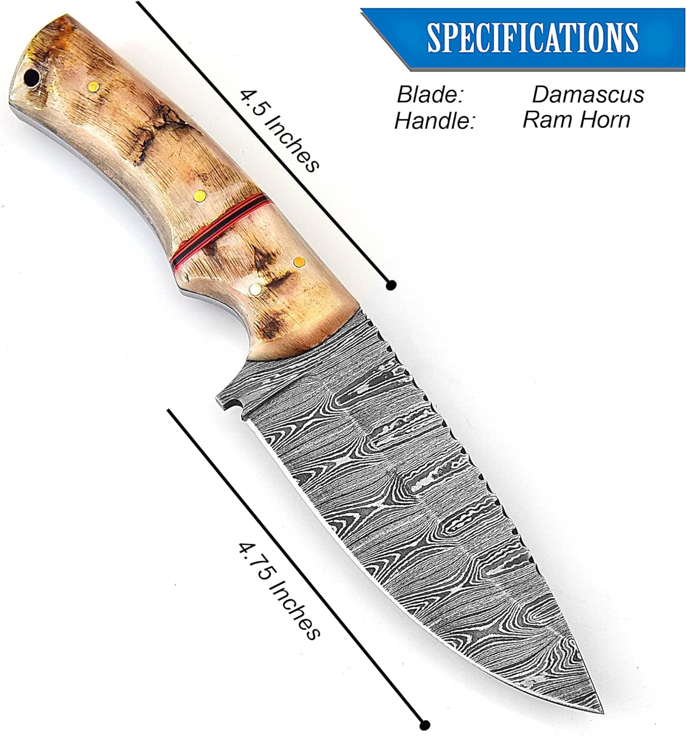 Ram Horn Handle 9.25" Damascus Hunting Knife