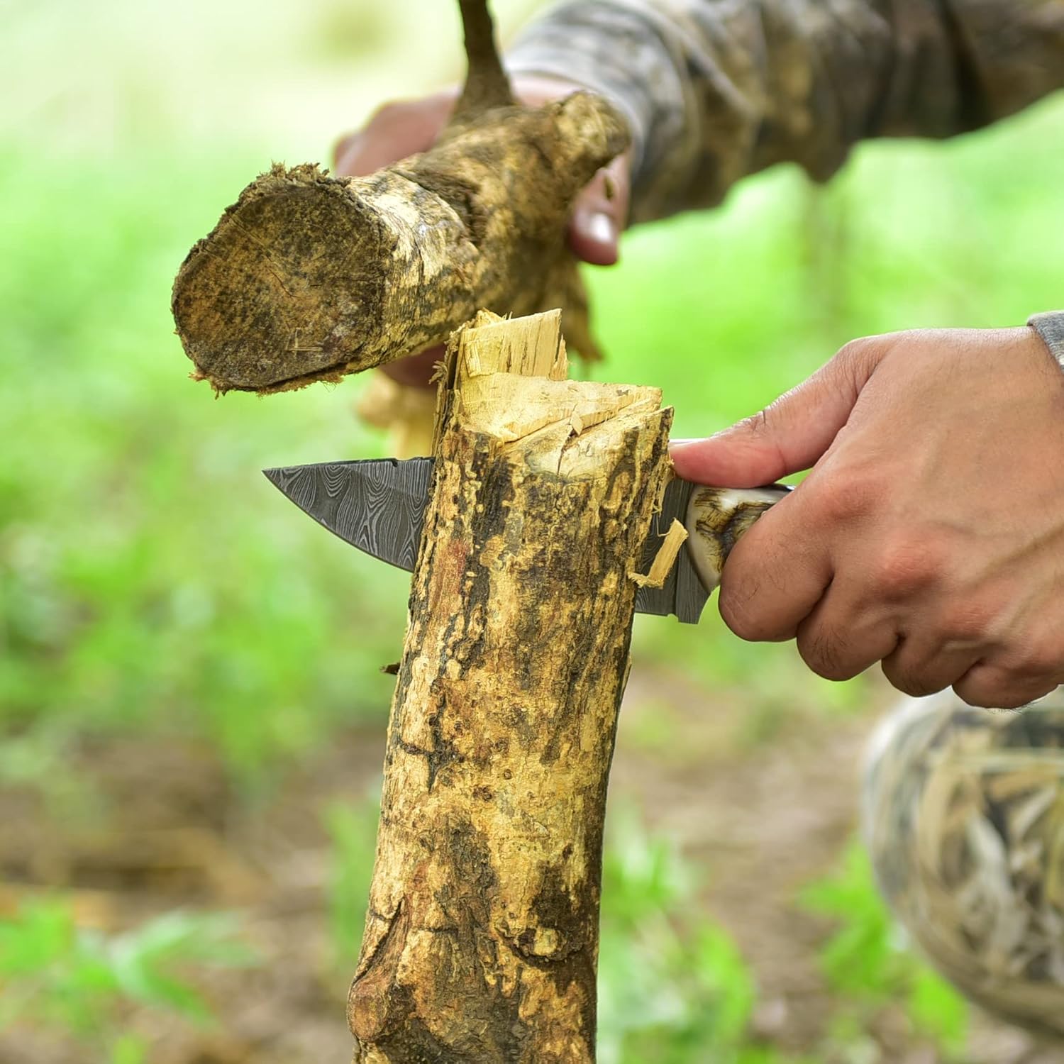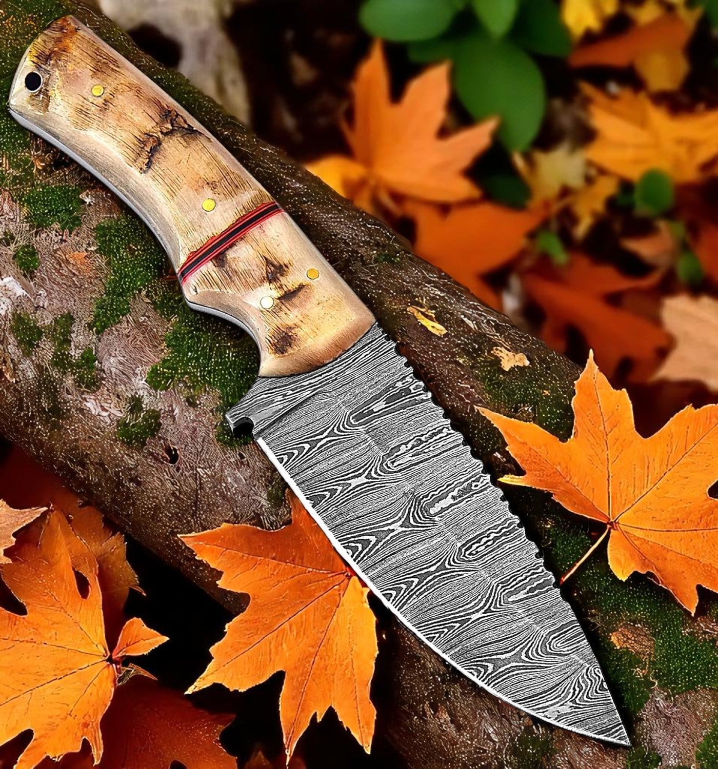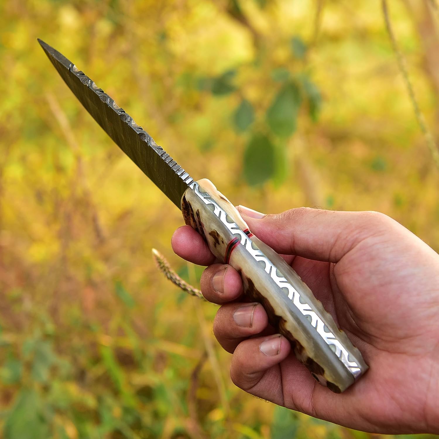 Ram Horn Handle 9.25" Damascus Hunting Knife