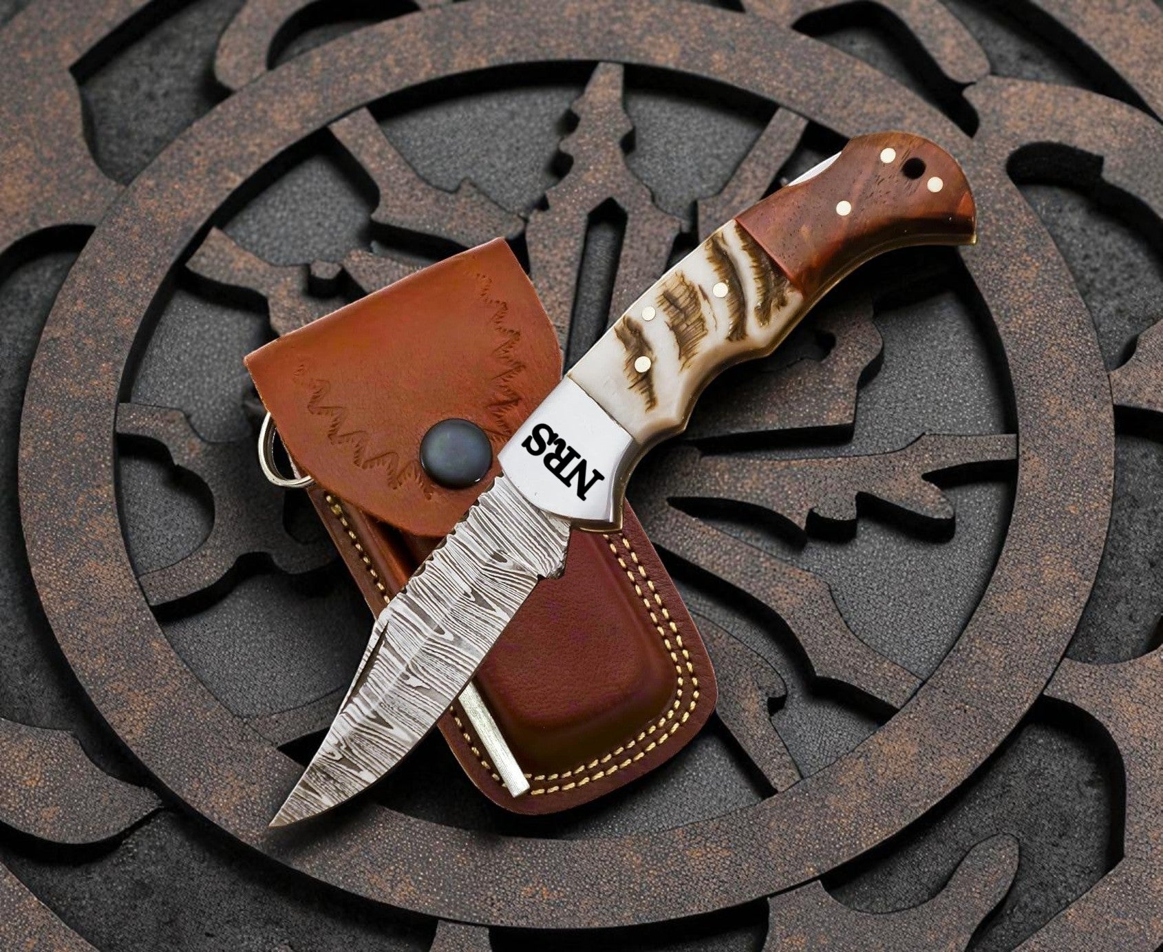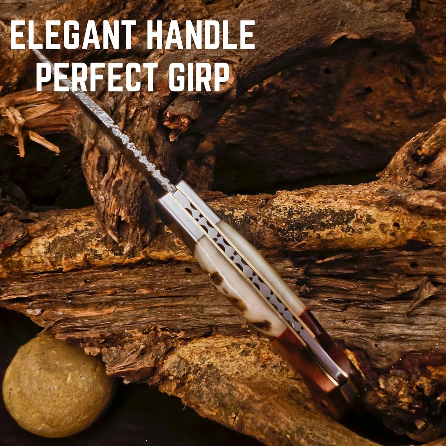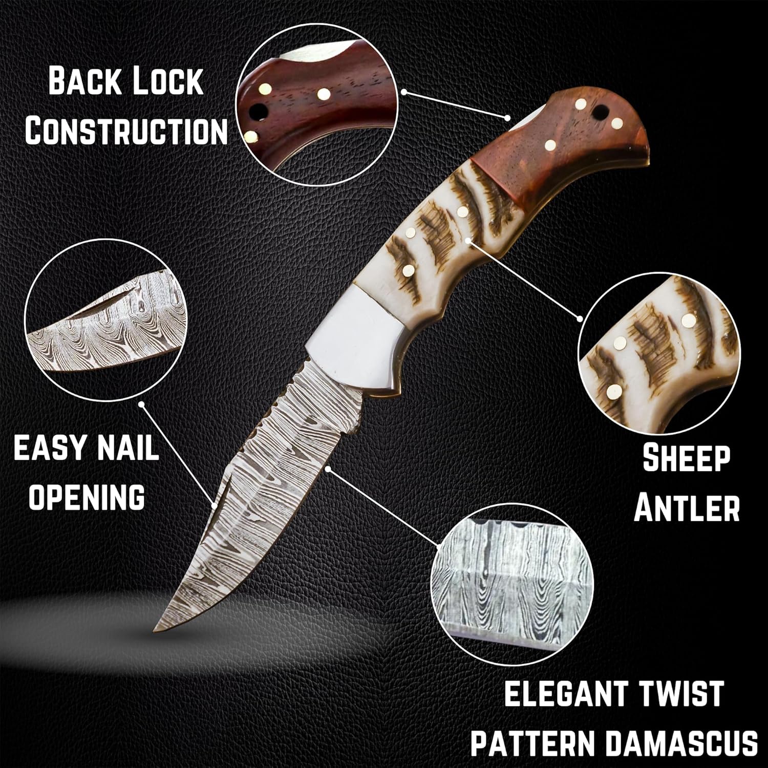 Ram Horn & Rosewood Handle 6.5" Damascus Pocket Knife