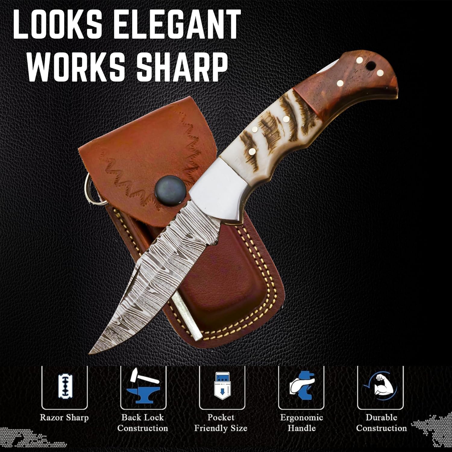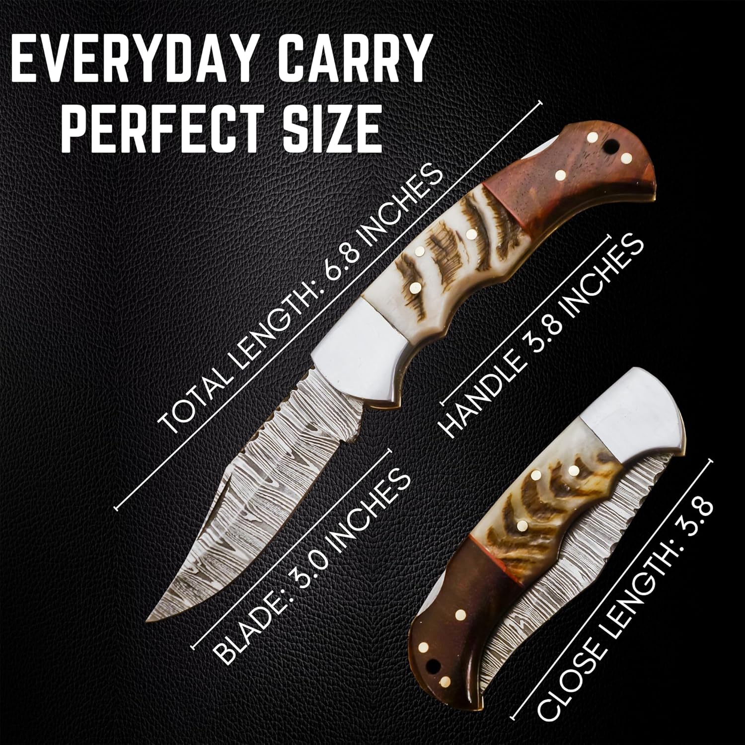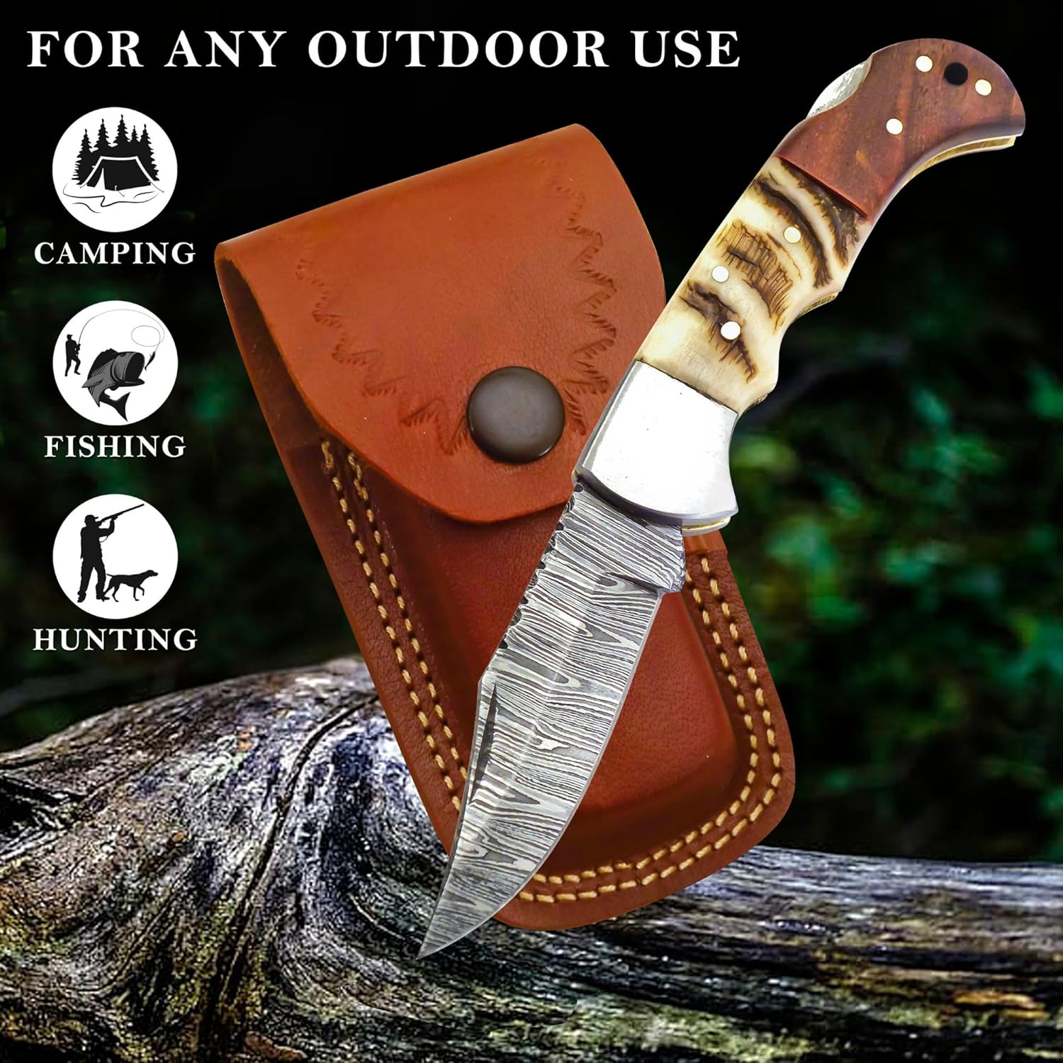 Ram Horn & Rosewood Handle 6.5" Damascus Pocket Knife