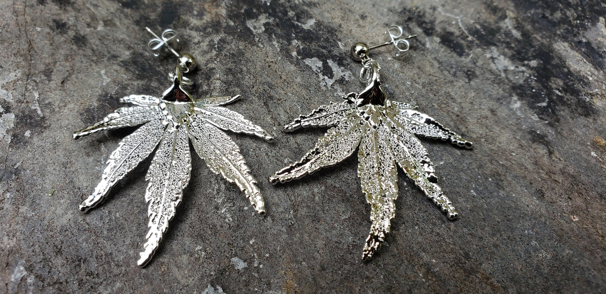 Our leaf jewelry selection is perfect for those who love nature. These real leaf earrings are processed down to the leaf veins, then dipped in 24K Gold, Silver, or Iridescent Copper options.
