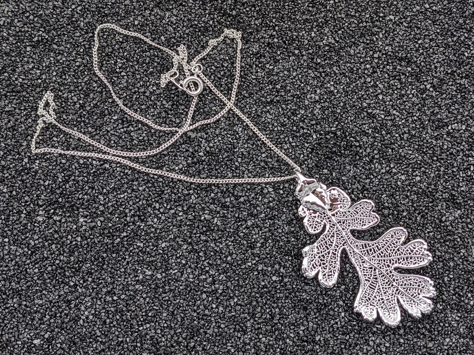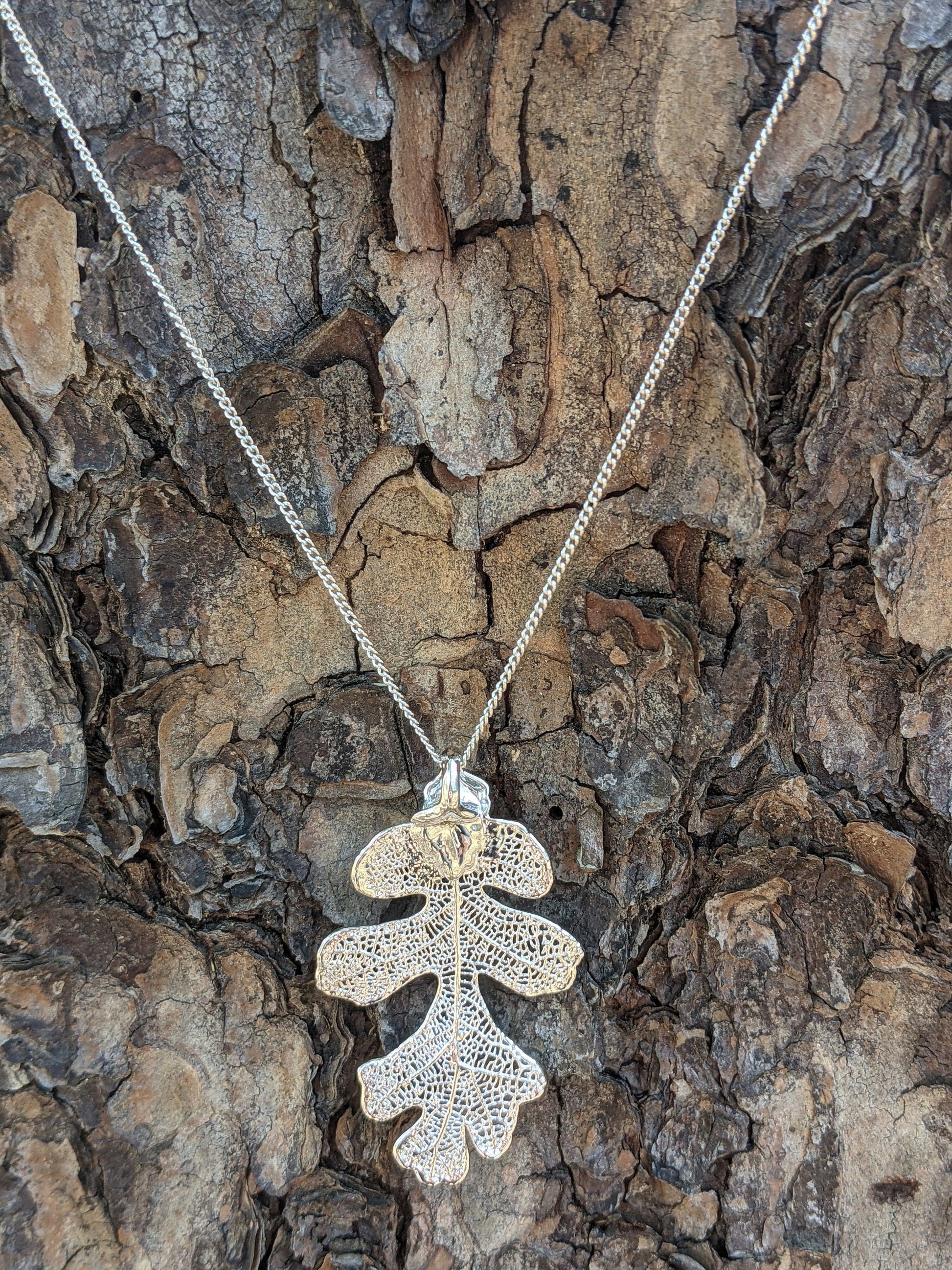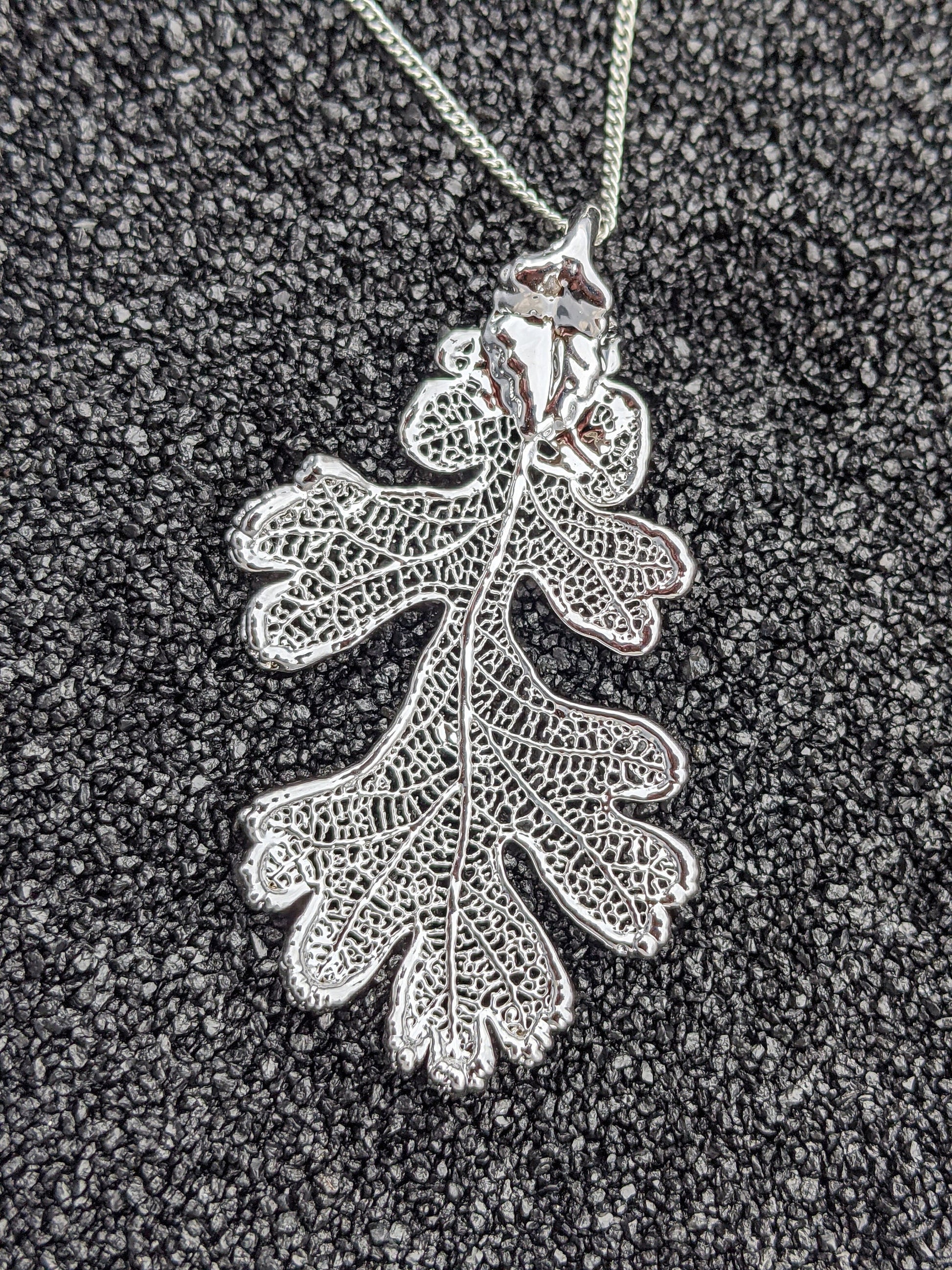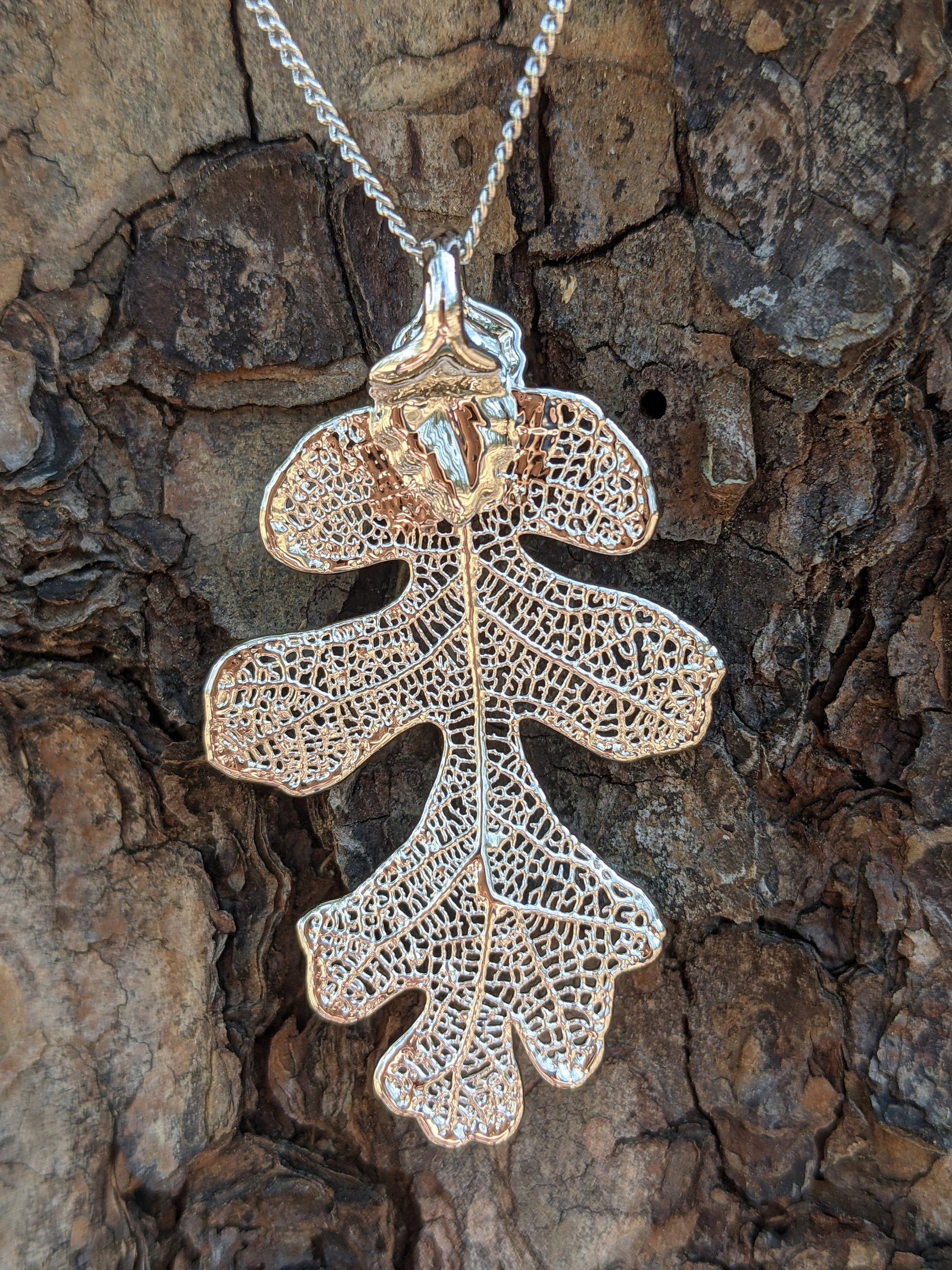 Absolutely stunning real leaf jewelry! Our leaf jewelry selection is perfect for those who love nature. These real leaf pendants are processed down to the leaf veins, then dipped in 24K Gold, Silver, or Iridescent Copper options. These fine pieces of natural jewelry vary slightly in size due to them being made from a real leaf. Our leaf jewelry is very special and fits for any occasion. Perfect for formal and casual wear.