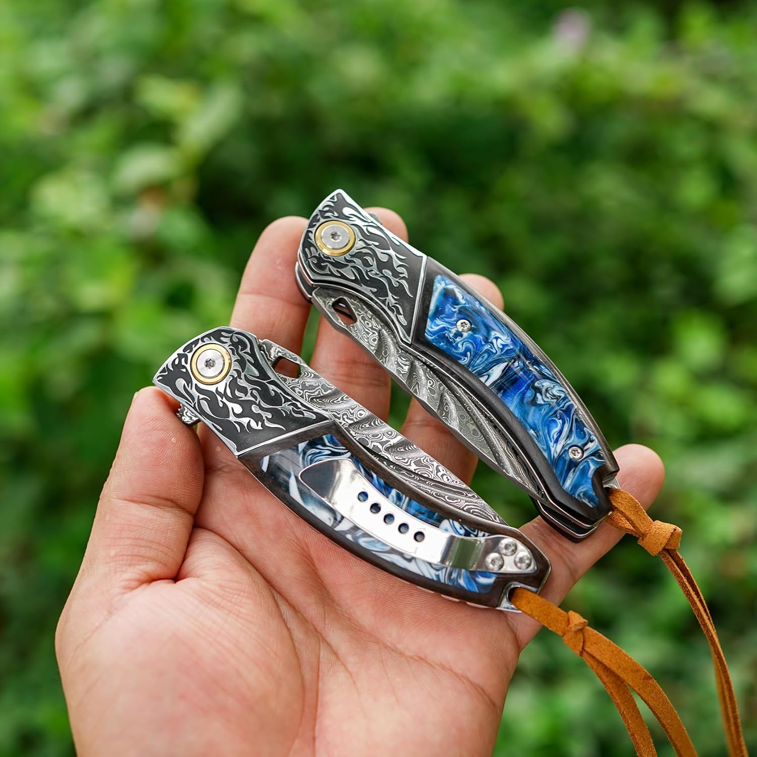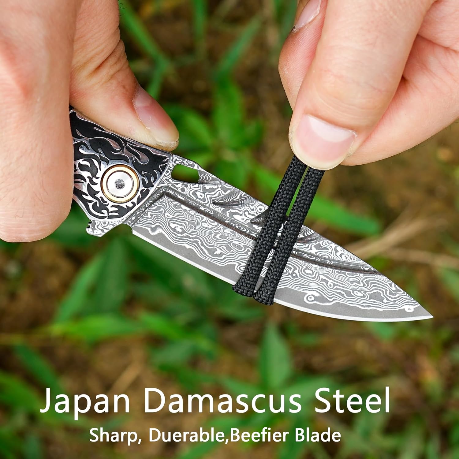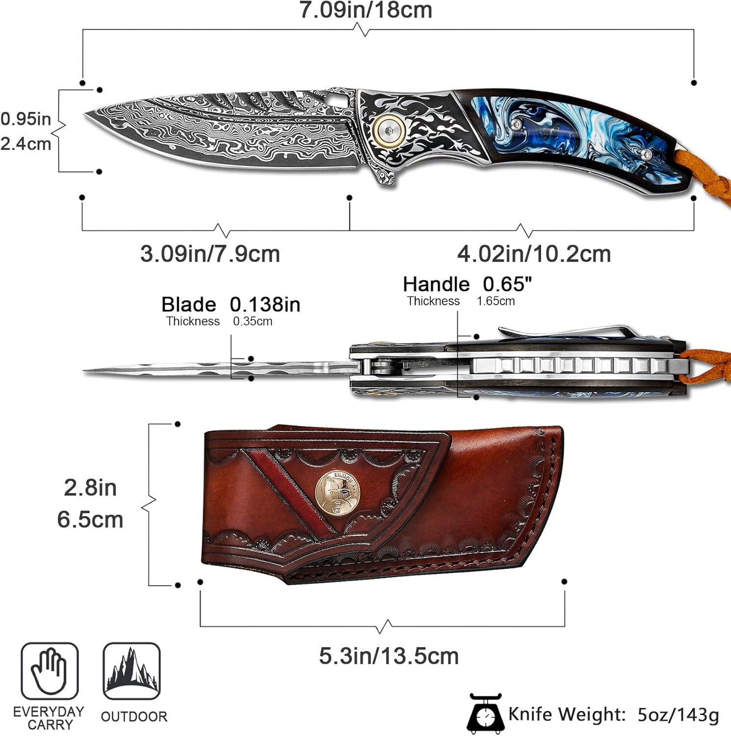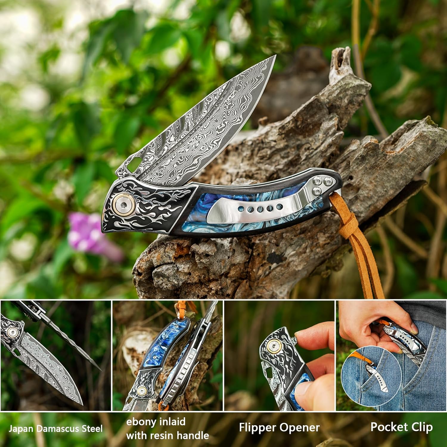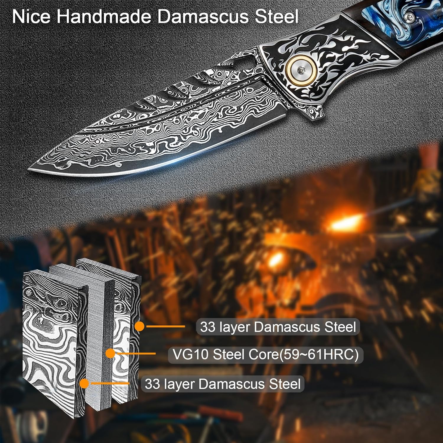 Engraved VG10 Damascus Folding Knife | Personalized Pocket Knife | Rose Wood Handle Knife | Wedding Husband Anniversary Father Gift
