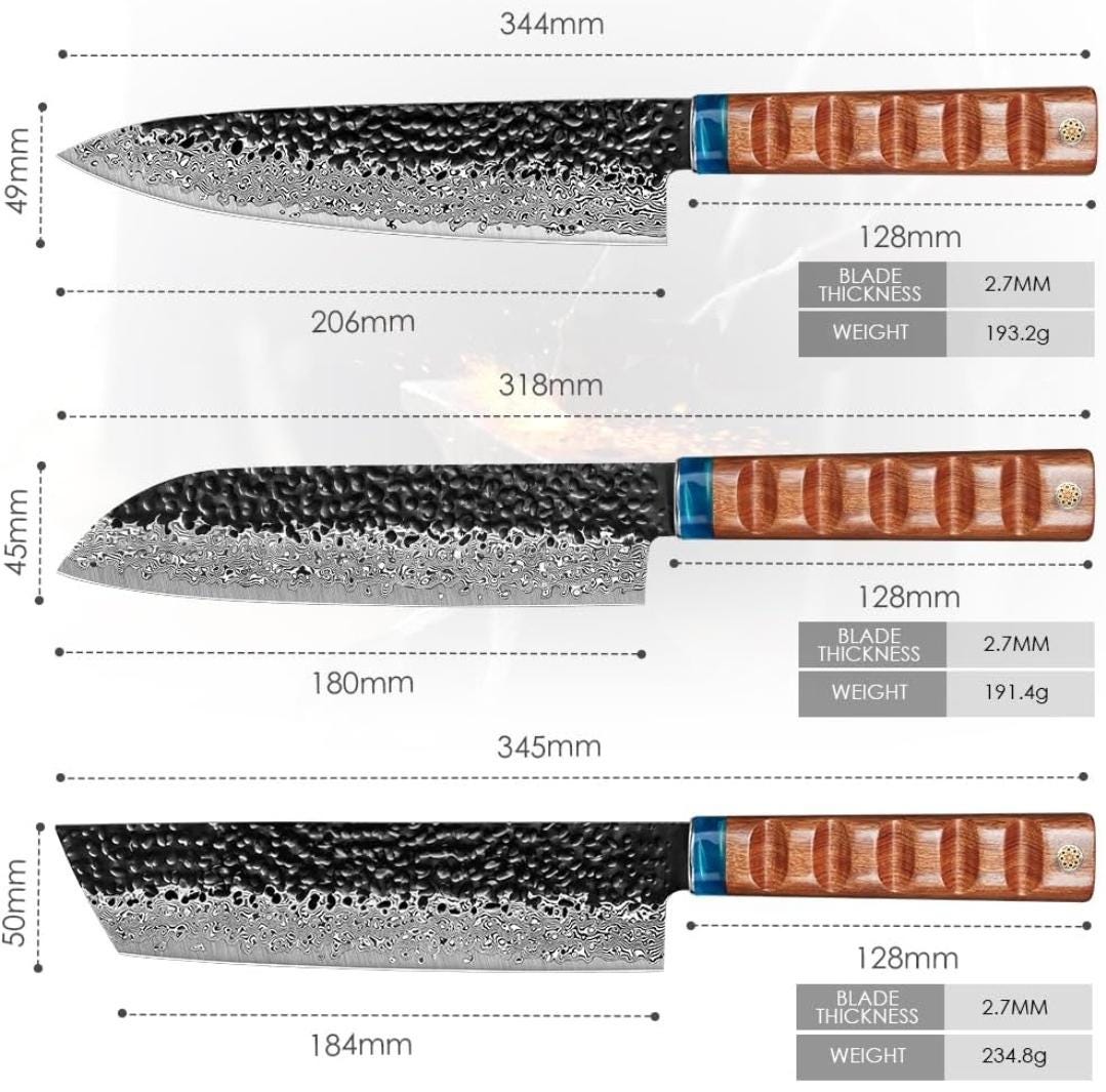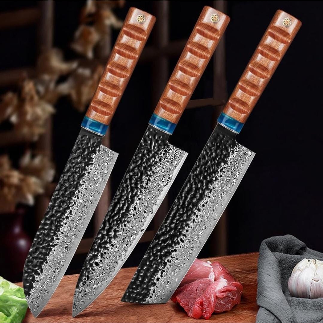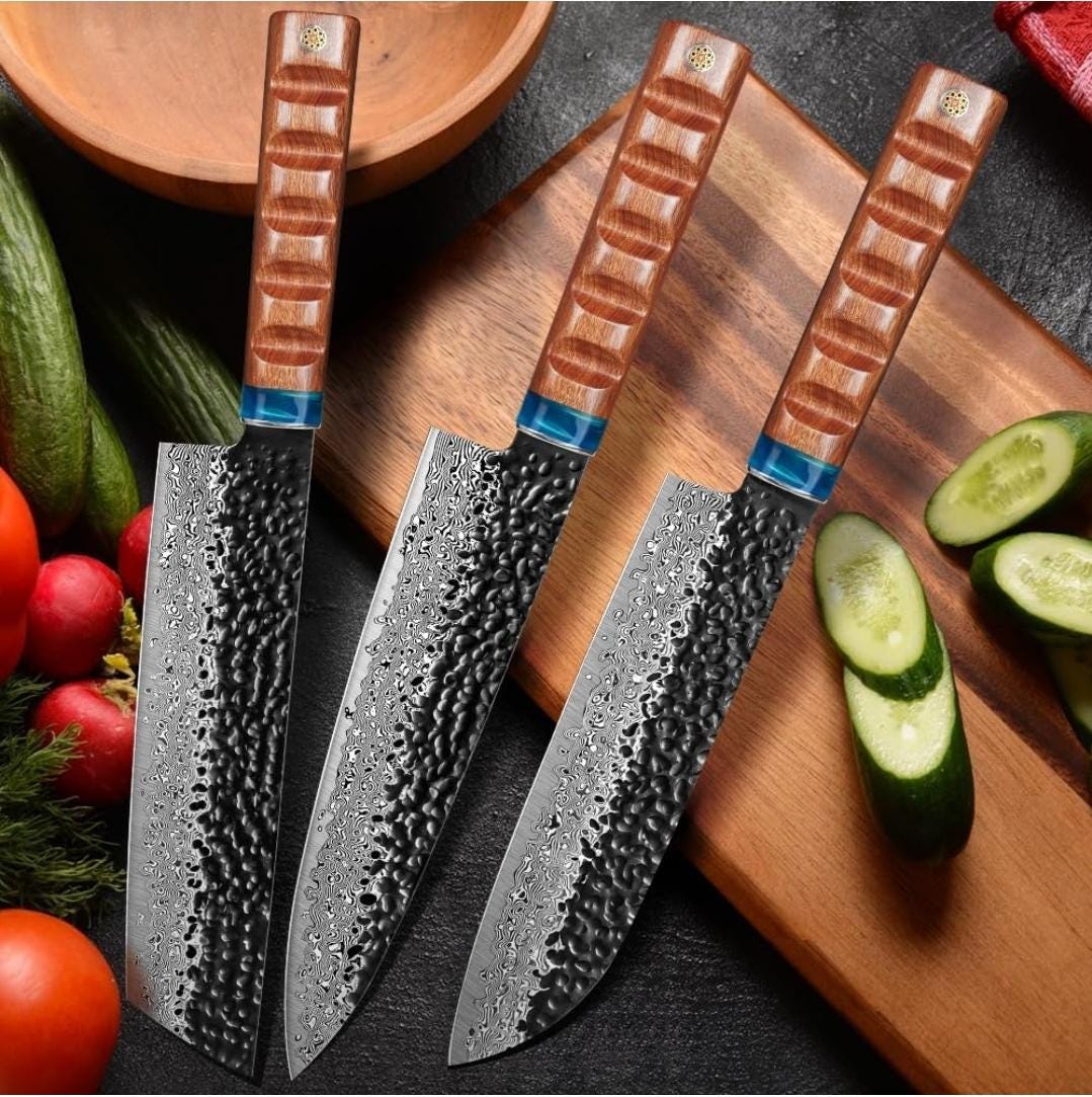 This premium quality set of 3 chef knives features stunning craftsmanship. North Rustic offers unrivaled quality and is backed by our satisfaction guarantee. These knives make the perfect gifts, they provide a quality blade and handle for top performance for any need. We provide fast and free shipping and excellent customer care.