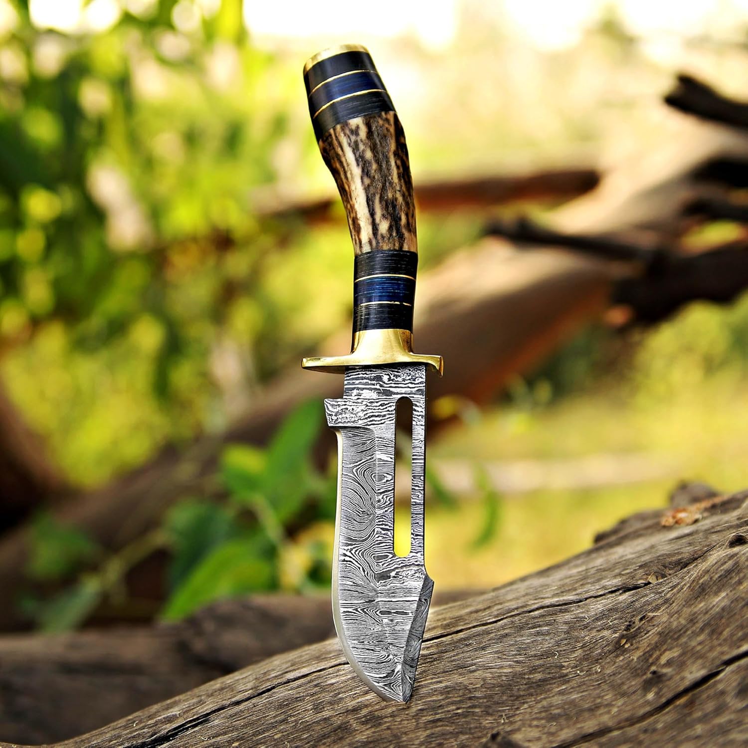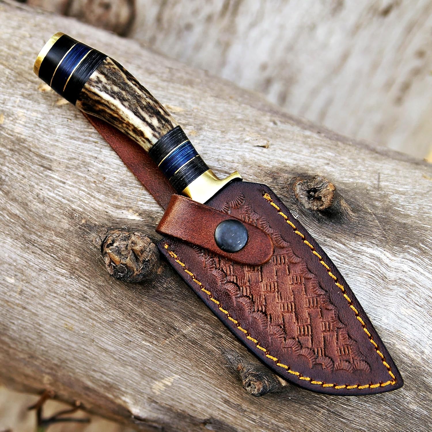 Small 4"Damascus Hunting Knife Antler Horn Handle