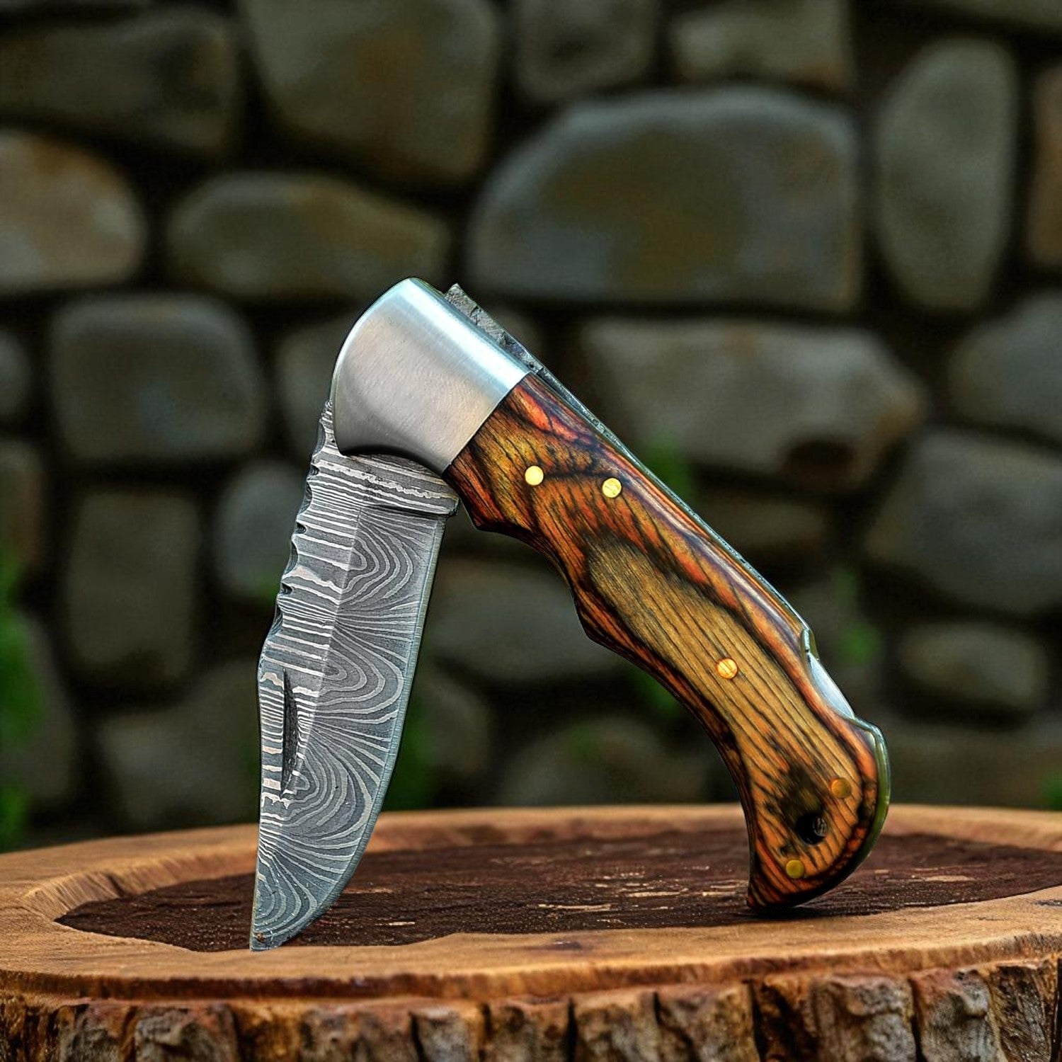 Walnut Wood Handle 6.5" Damascus Folding Knife