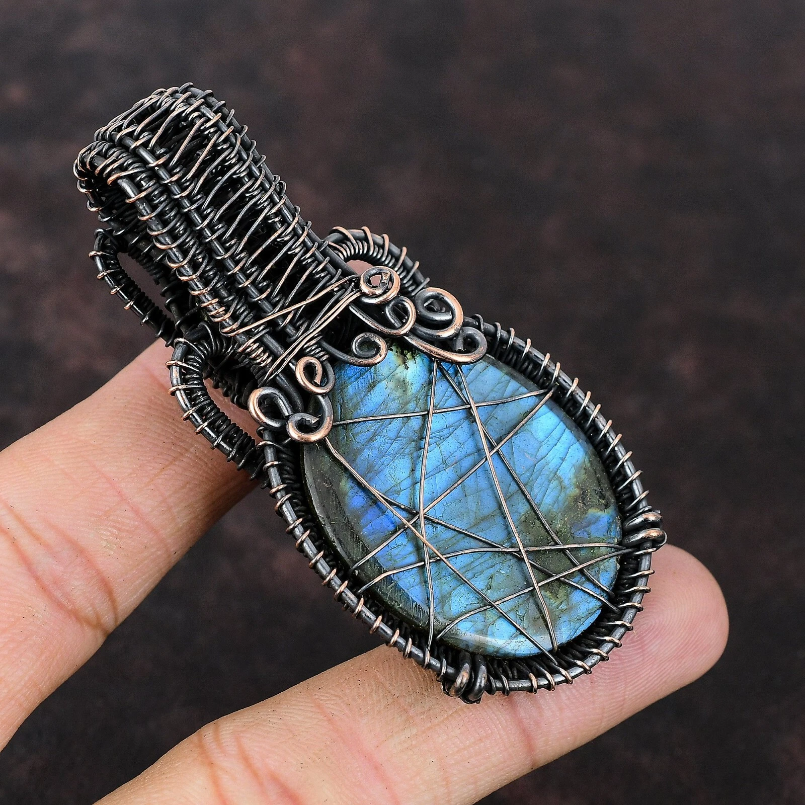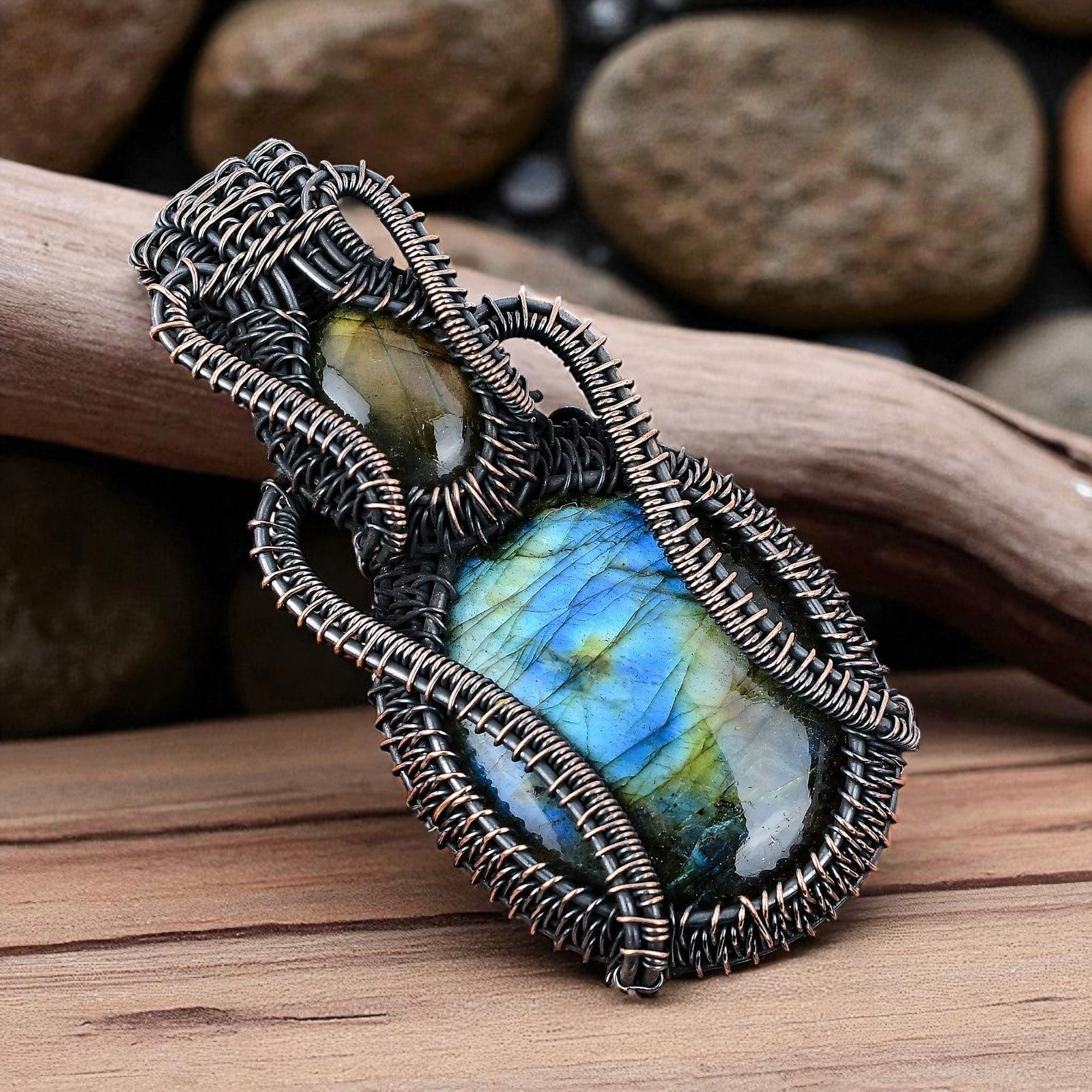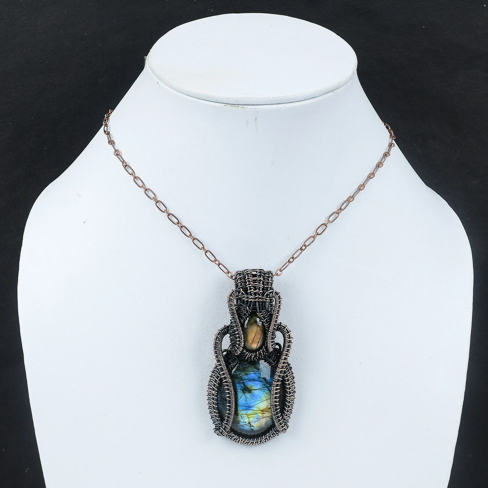 Wire Wrapped Labradorite Oval Pendant 20" Necklace