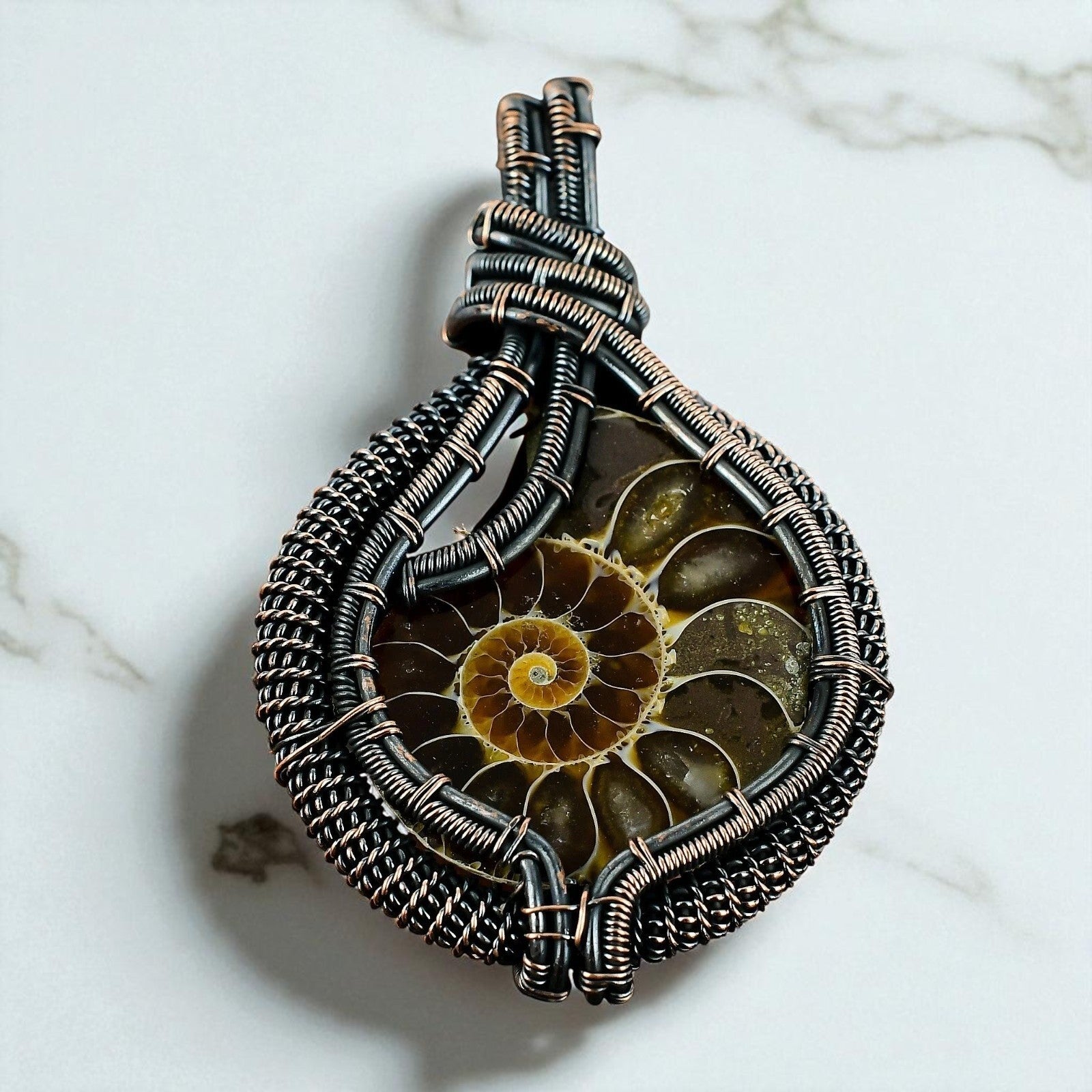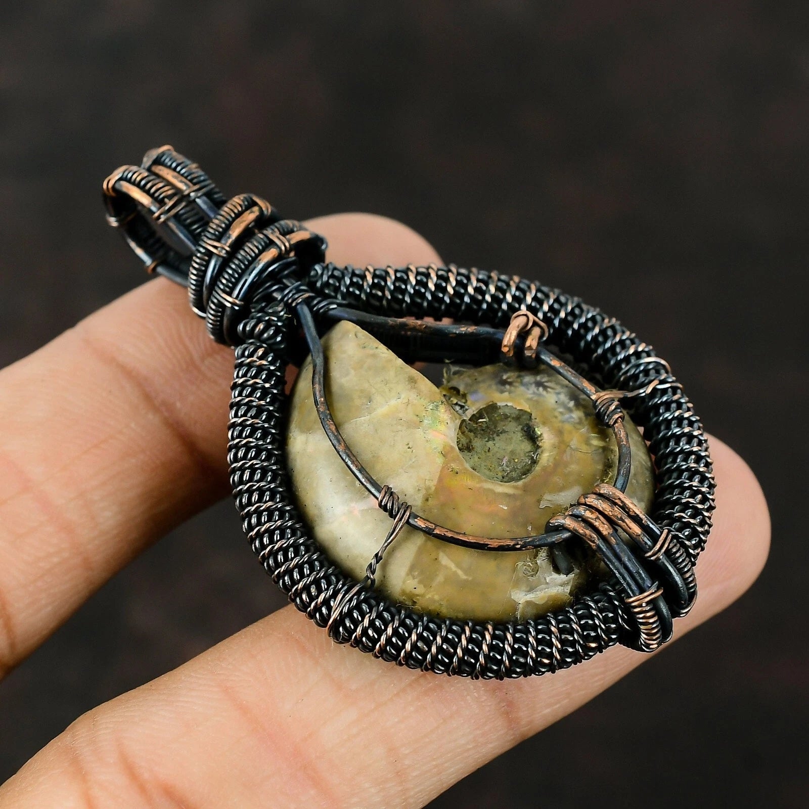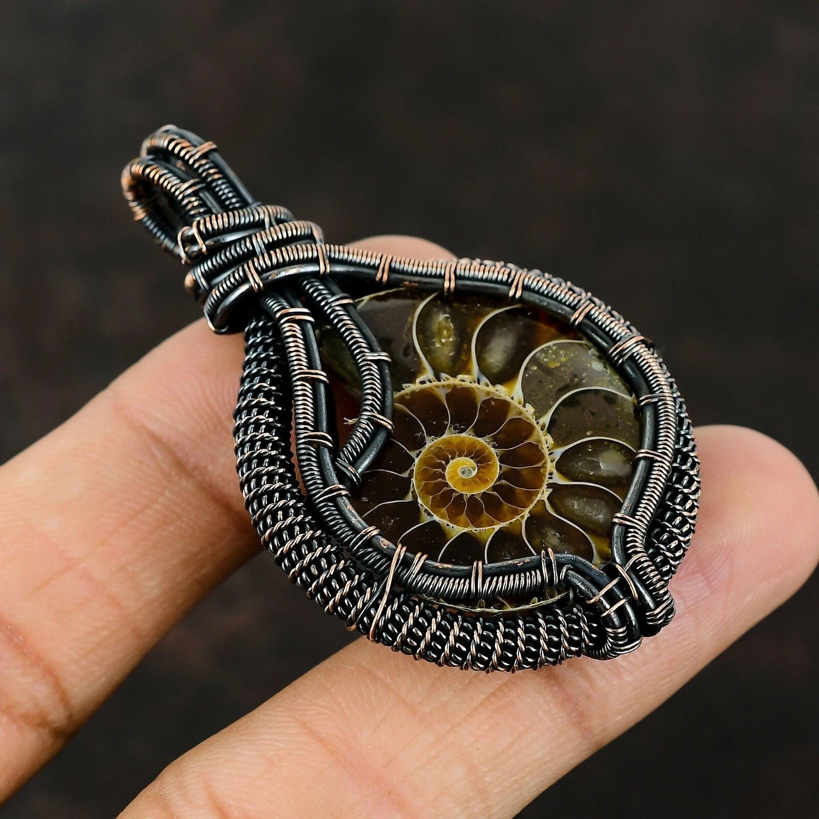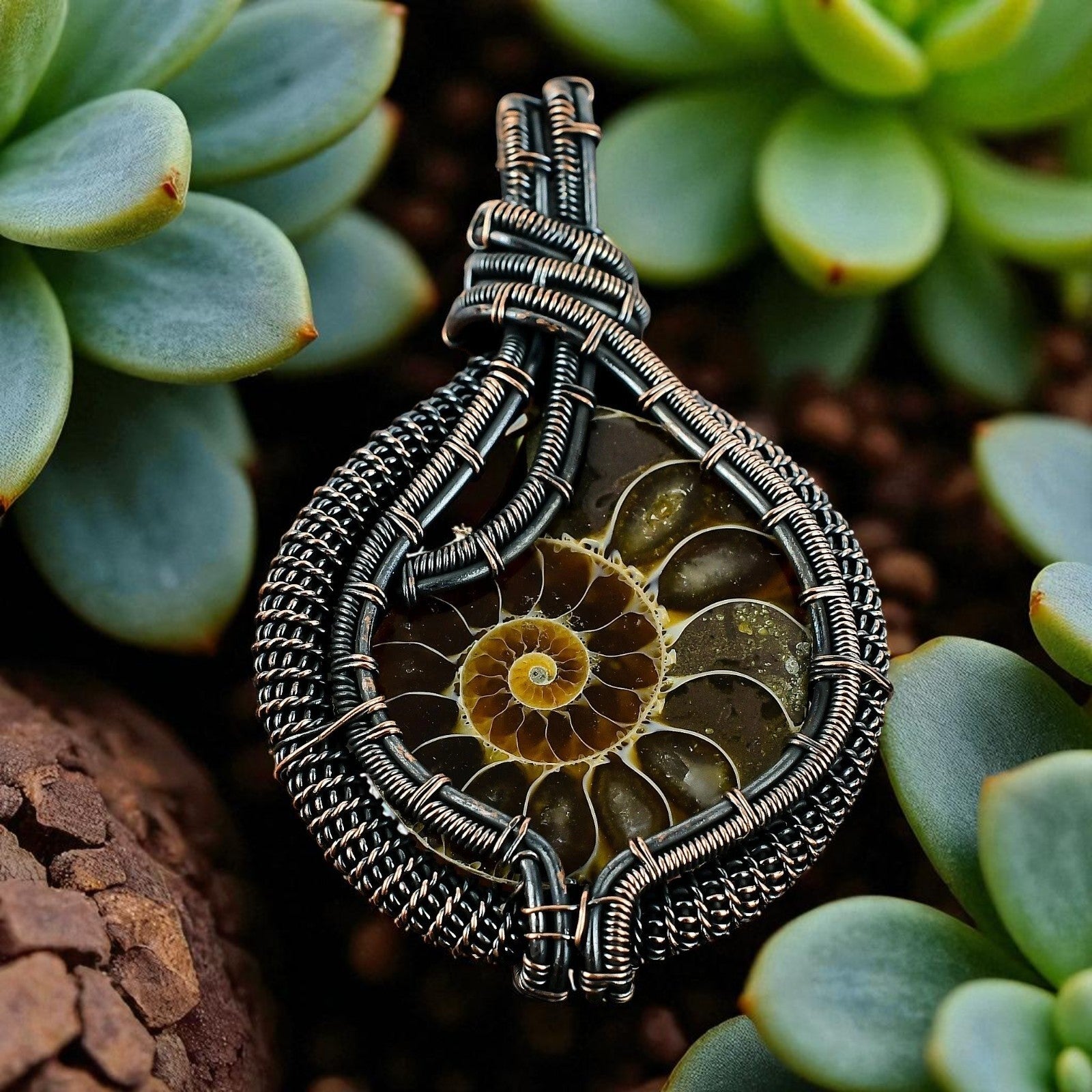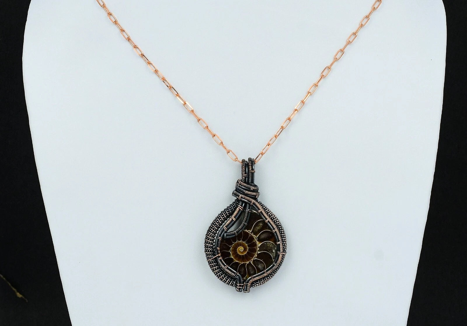 Wire Wrapped Necklace With Ammonite Fossil Pendant