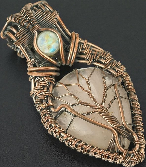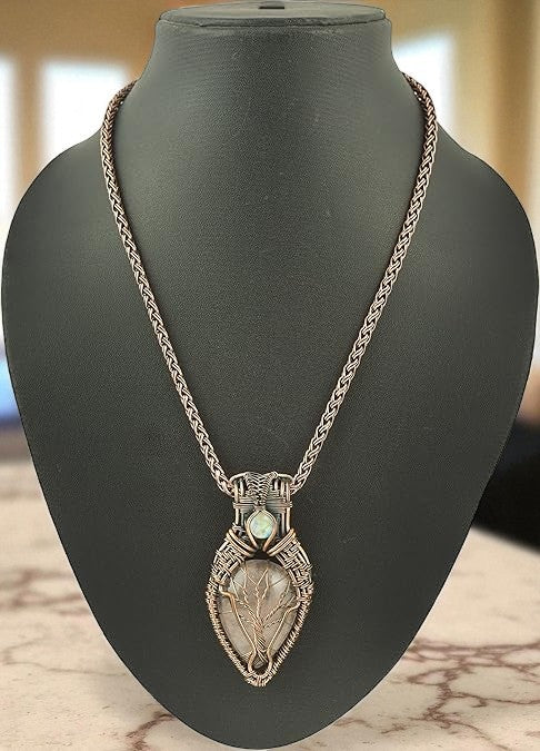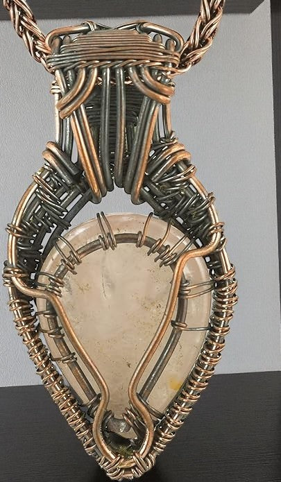 Wire Wrapped Necklace With Rose Quartz Pendant