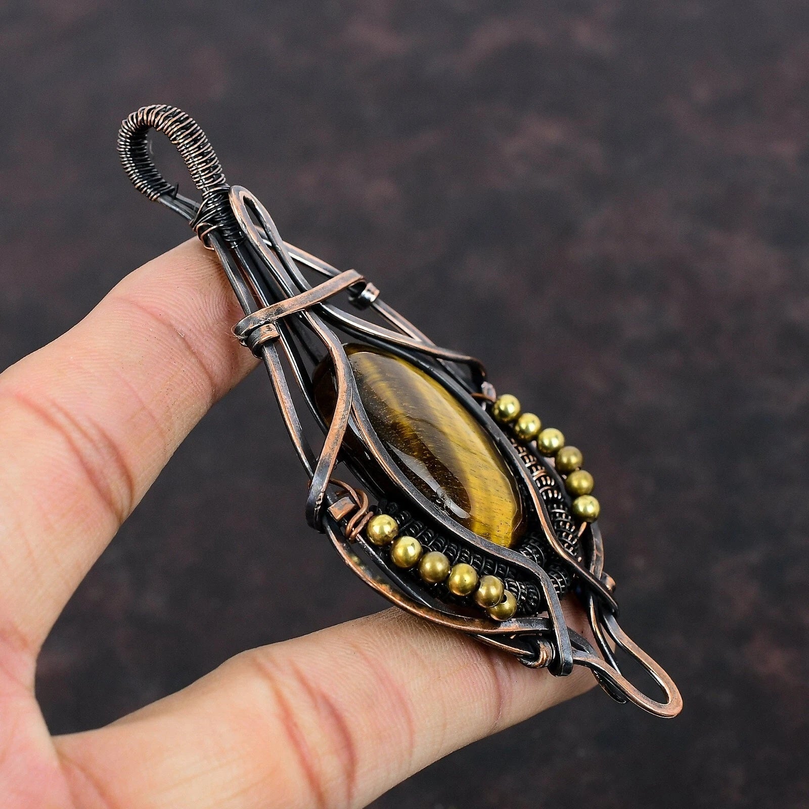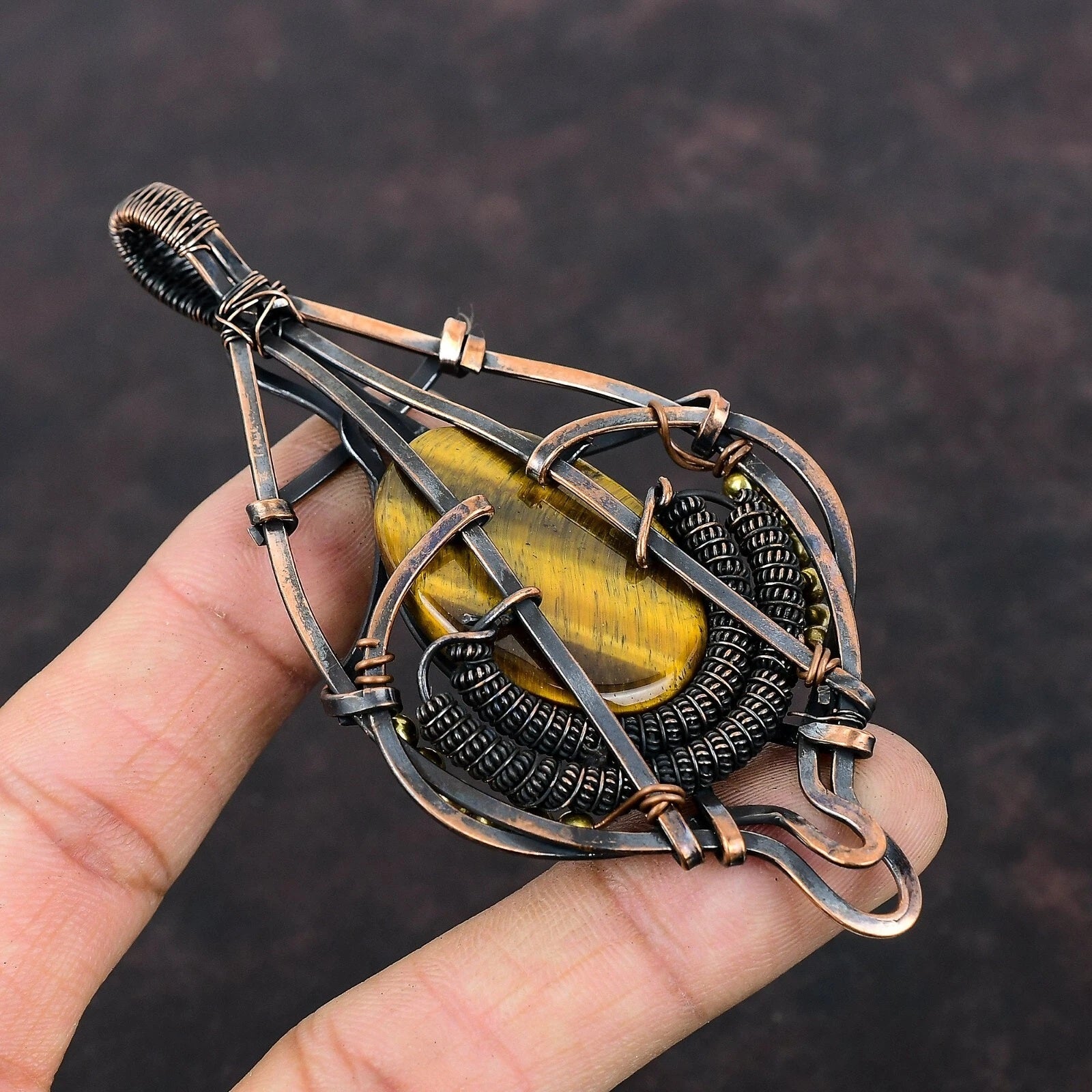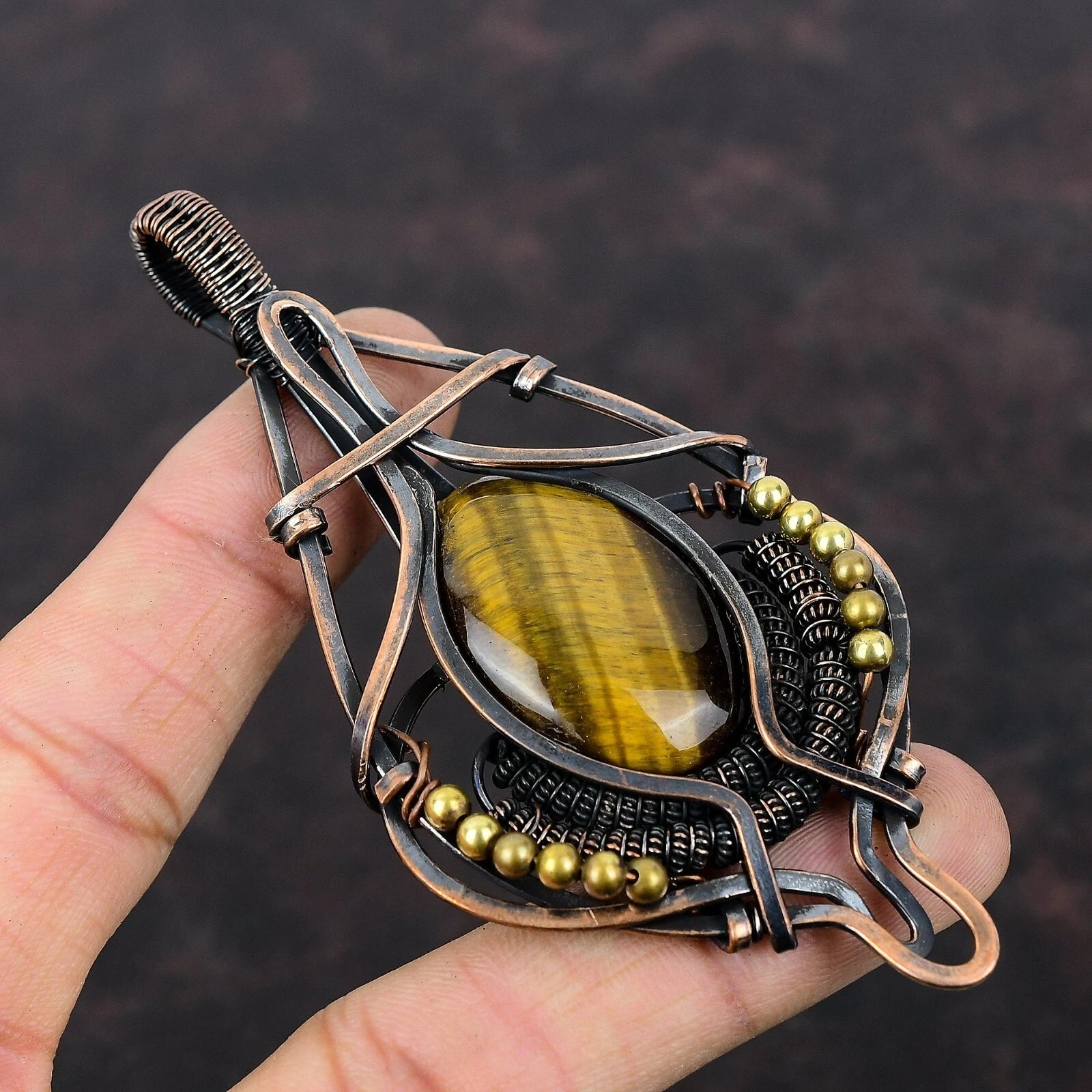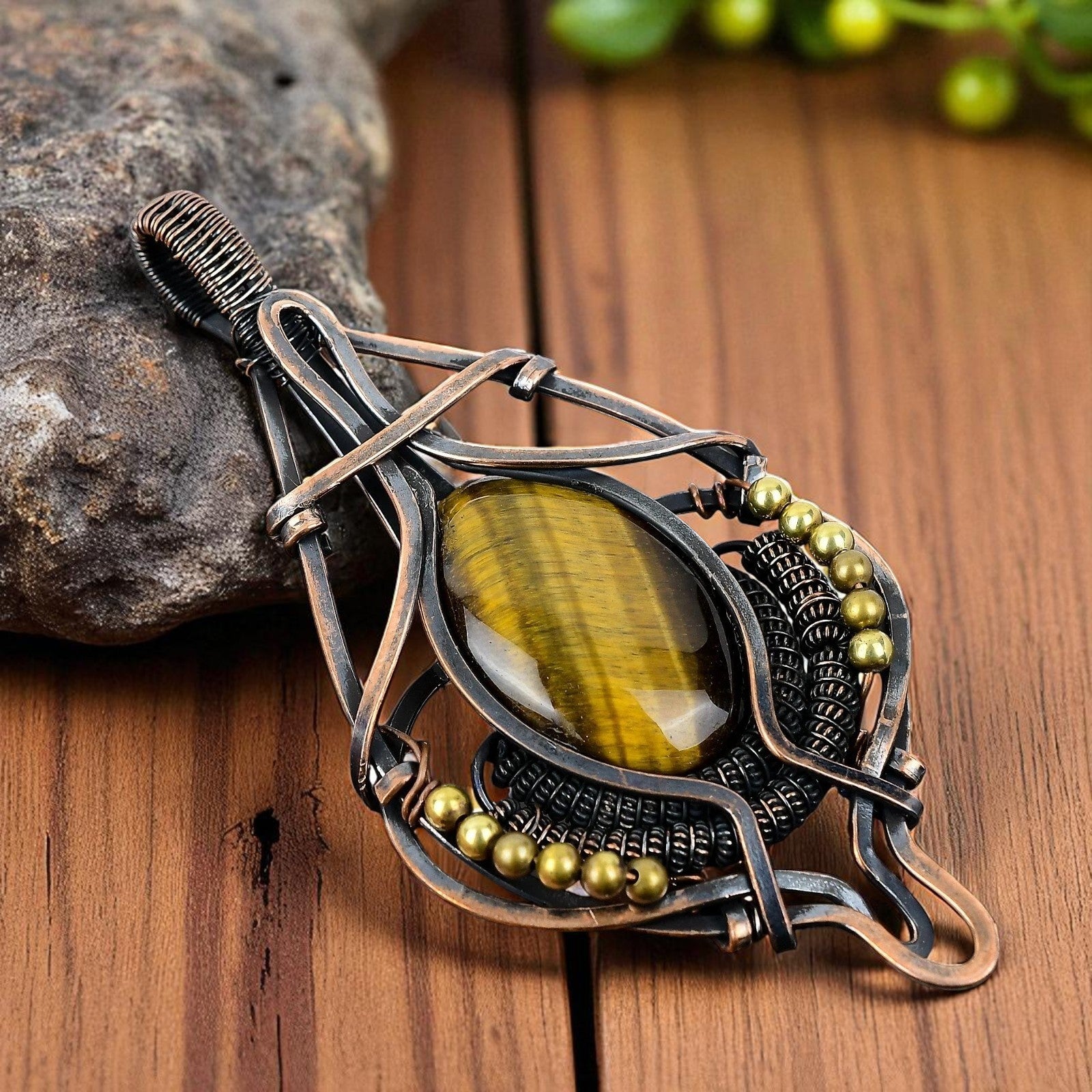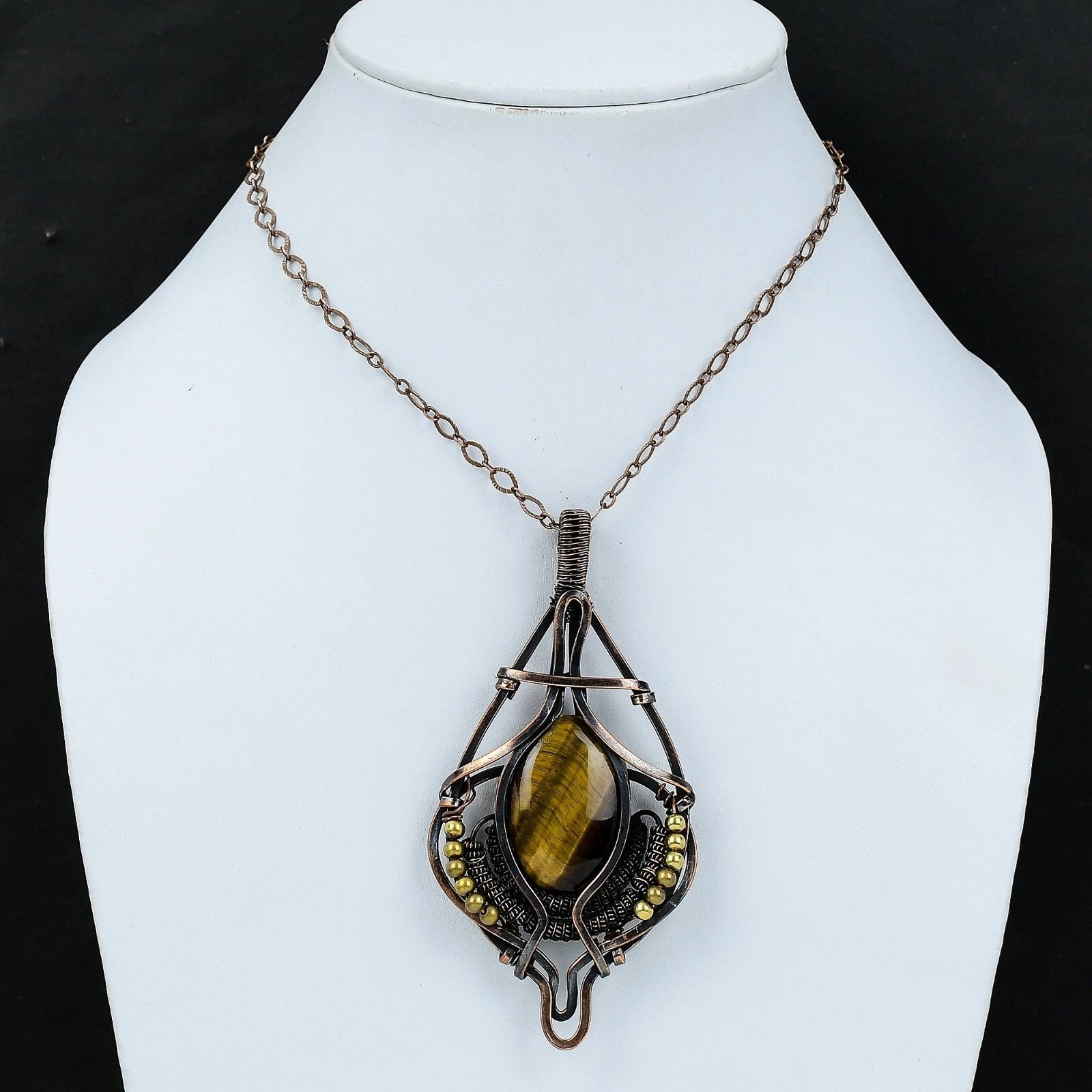 Wire Wrapped Necklace With Tiger Eye Pendant