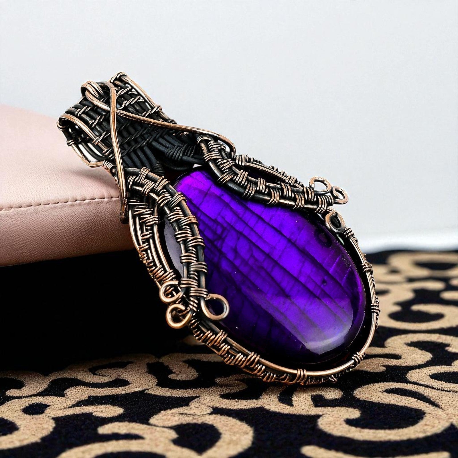 Wire Wrapped Purple Labradorite Pendant 20" Necklace